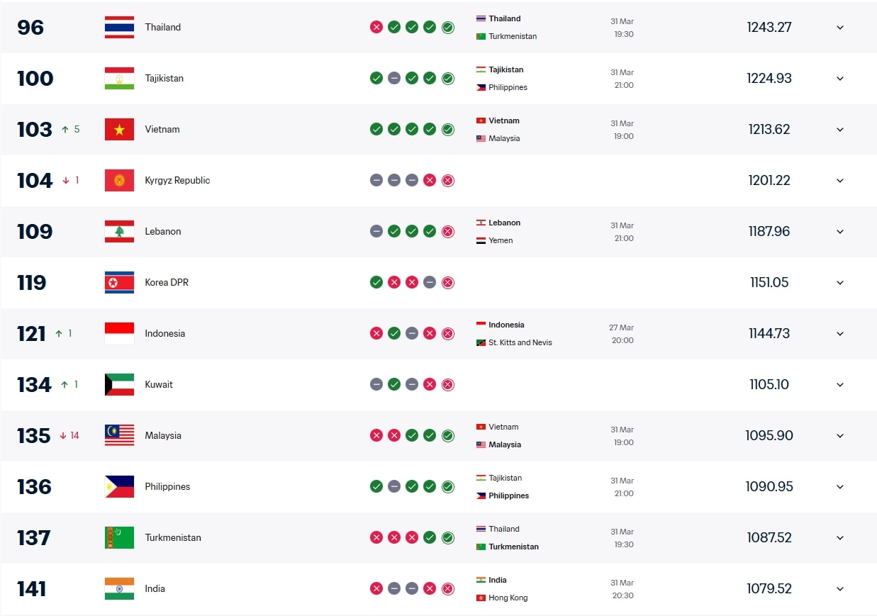 Việt Nam thăng hạng, Malaysia trả giá vì bê bối. Ảnh chụp màn hình.