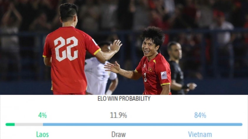 Sự chênh lệch giữa hai đội tuyển được thể hiện rõ qua chỉ số Elo, với Việt Nam đạt 72 điểm so với 32 của Lào. Xác suất giành 3 điểm của Việt Nam là 84%, khả năng hòa là 12%, và cơ hội để Lào tạo nên bất ngờ chỉ là 4%.