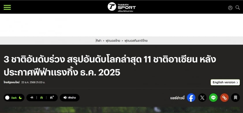 Báo Thái Lan phản ứng khi Việt Nam thăng tiến mạnh trên BXH FIFA (Ảnh: Chụp màn hình).
