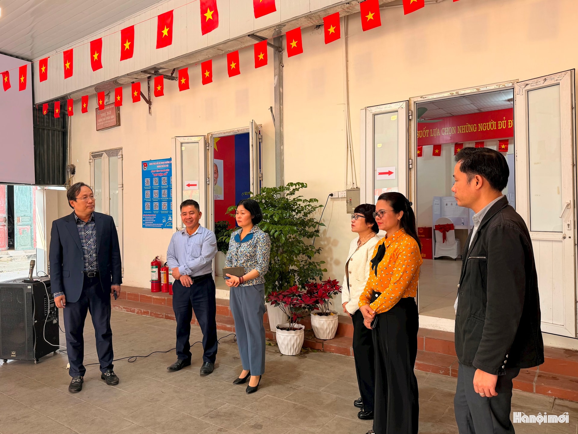 Công tác kiểm tra, đôn đốc các bộ phận khu vực bầu cử được cán bộ, lãnh đạo phường Lĩnh Nam triển khai liên tục theo từng giờ, trước ngày bầu cử. Ảnh: PV