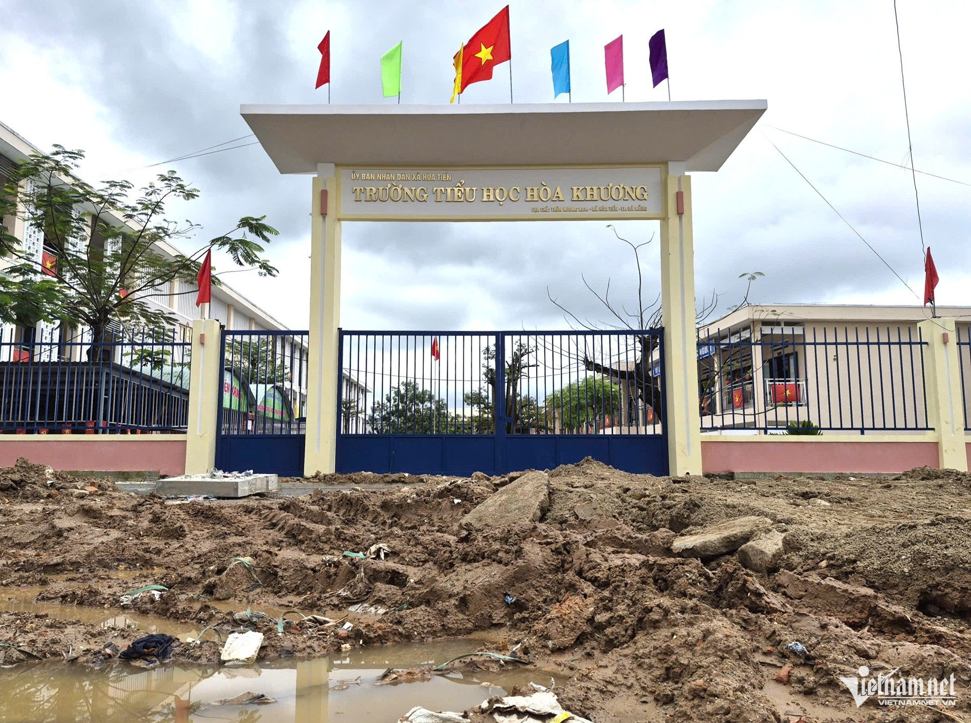 Đoạn đường bị đào xới chạy qua khu vực trường tiểu học.