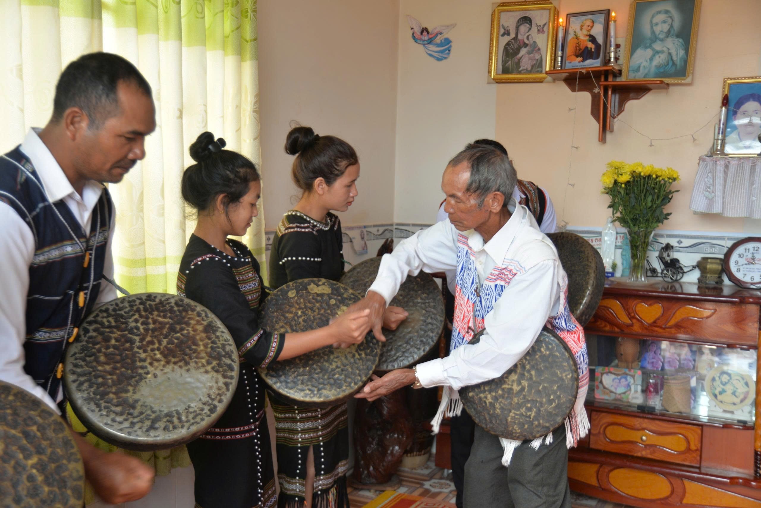 Truyền dạy cồng chiêng tại xã Gia Hiệp, Lâm Đồng. Ảnh: Thành Khiêm