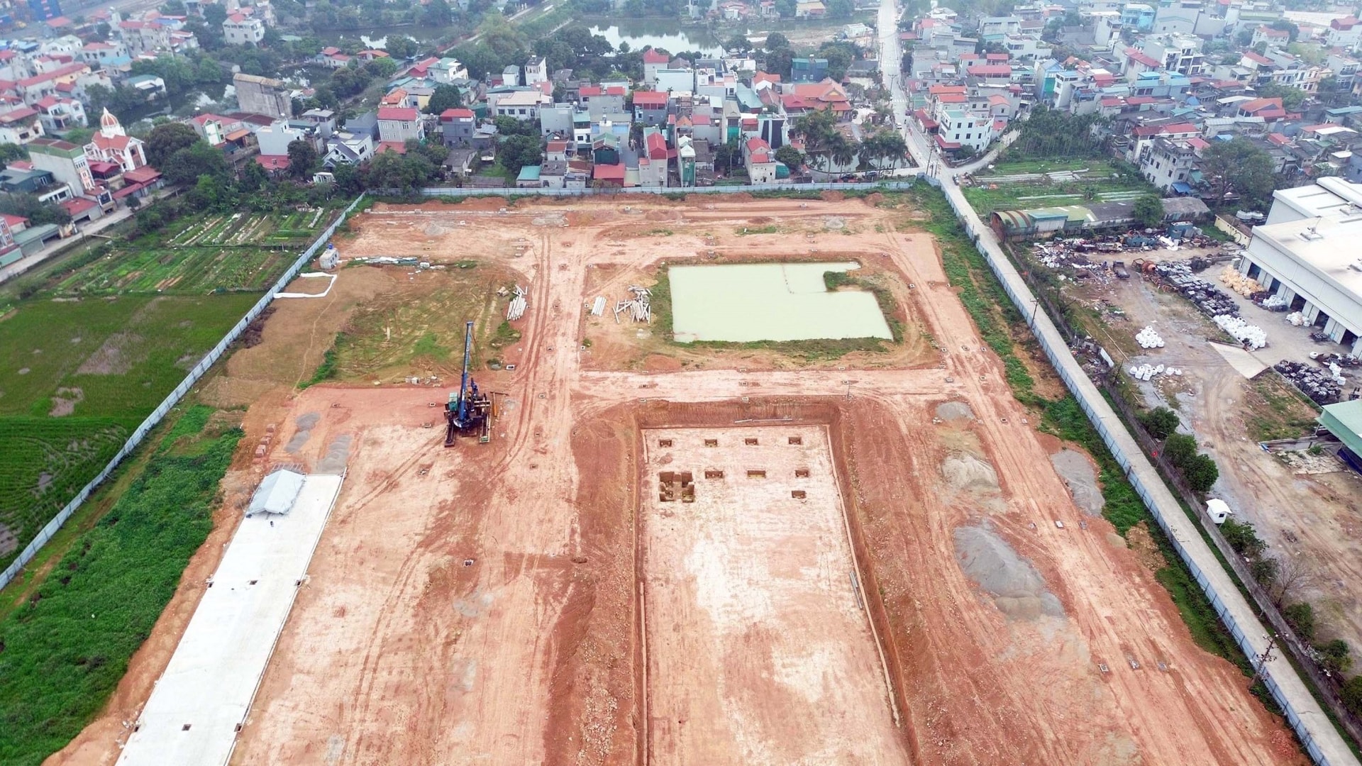 Sau hơn 2 năm giao đất, dự án đang triển khai một số hạng mục nền móng.
