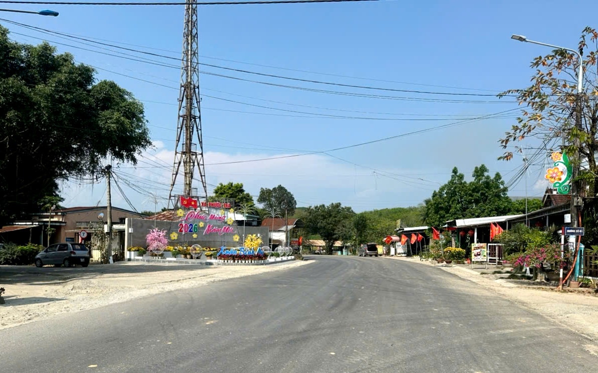 Một đoạn tuyến qua xã Phước Trà đã hoàn thành thảm bê tông nhựa lớp 2 (lớp cuối cùng). Ảnh: CÔNG TÚ