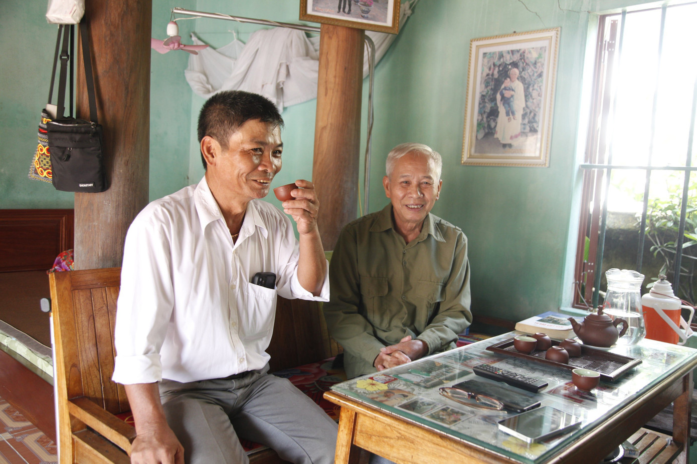 Ông Nguyễn Văn Dậu, Trưởng thôn Hương La (bên trái) và ông Nguyễn Văn Việc đồng thuận với dự án Cảng hàng không quốc tế Gia Bình