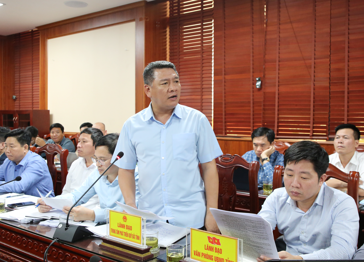 Giám đốc Trung tâm Phát triển Quỹ đất tỉnh Bắc Ninh Đỗ Đình Hữu báo cáo tại Hội nghị.