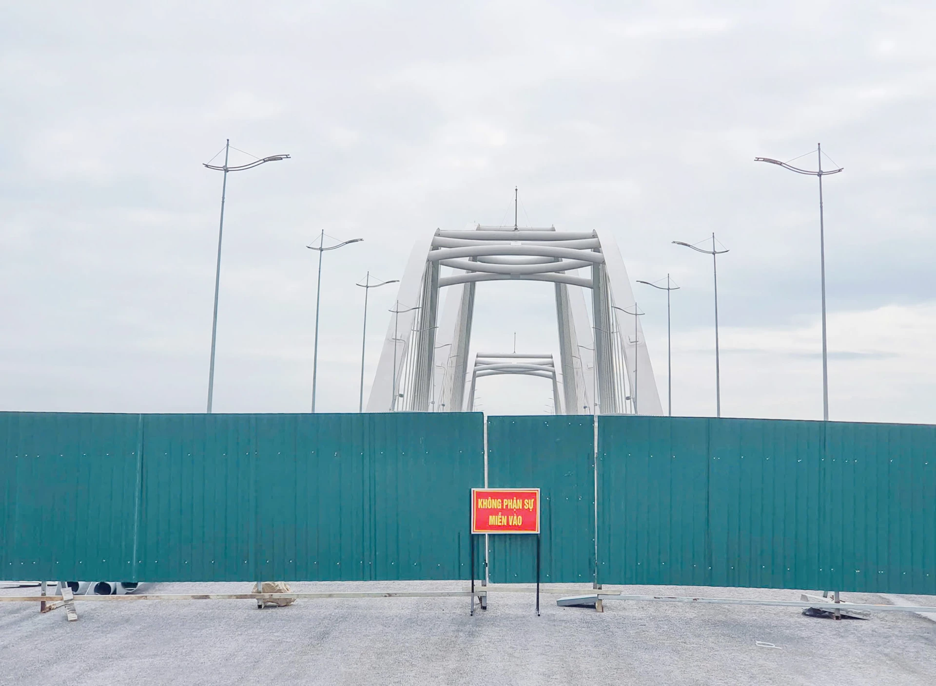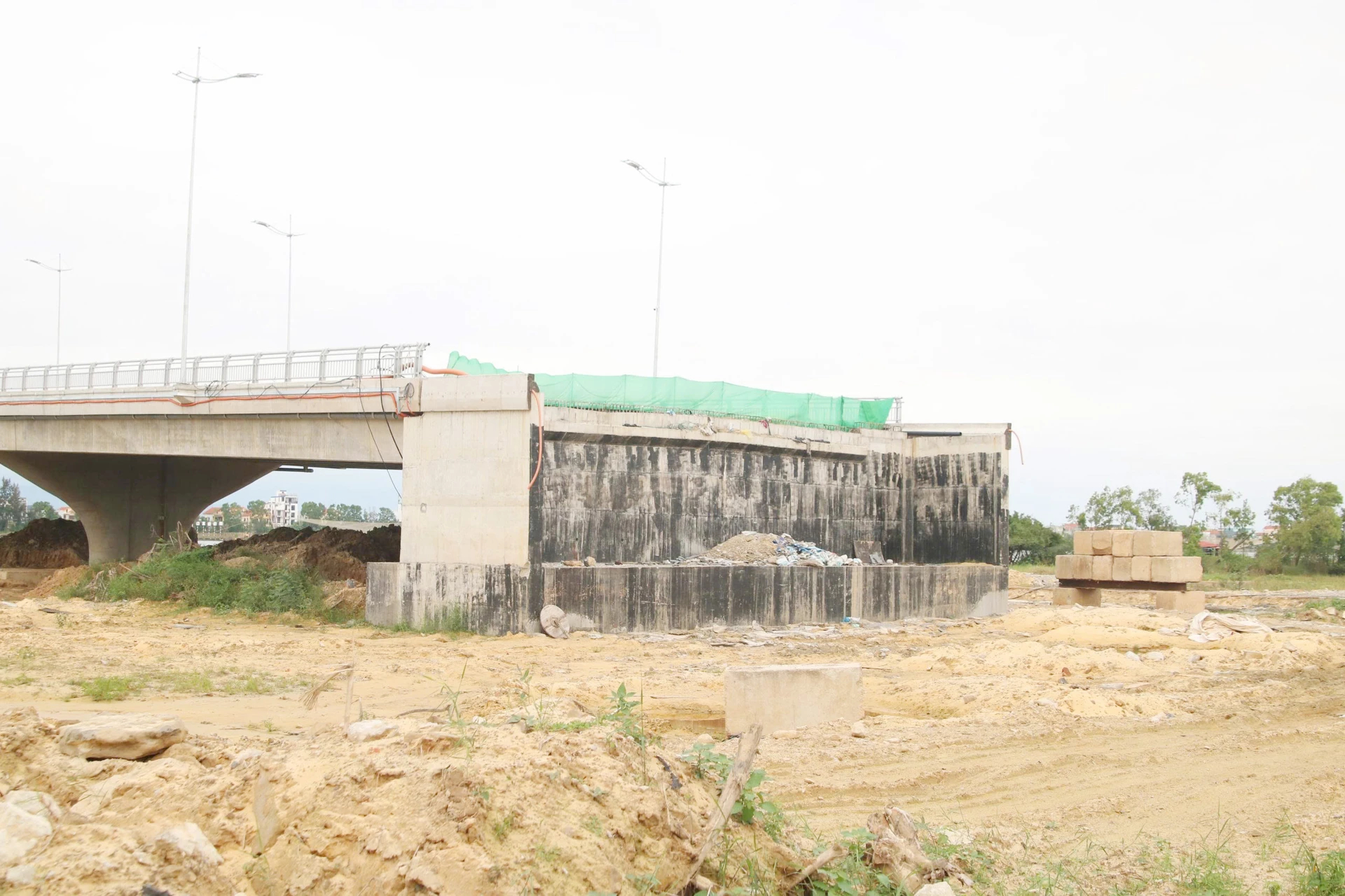 Cầu Nhật Lệ 3 đạt 95% khối lượng nhưng chưa thể thông xe do vướng mặt bằng đường dẫn vào cầu ở phía Đông - Ảnh: B.T