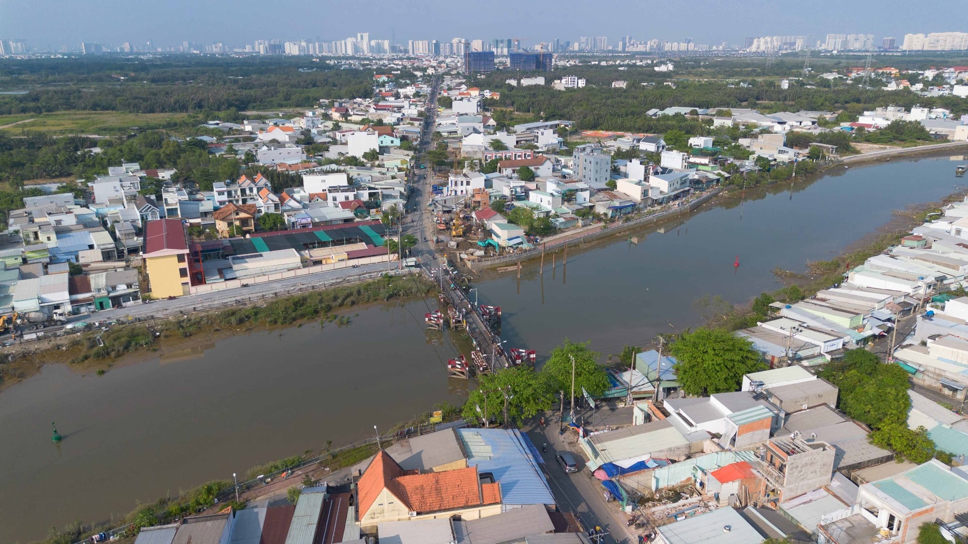 Khu vực cầu Rạch Tôm trên đường Lê Văn Lương, xã Hiệp Phước, TP HCM hiện đang được thi công xây dựng.
