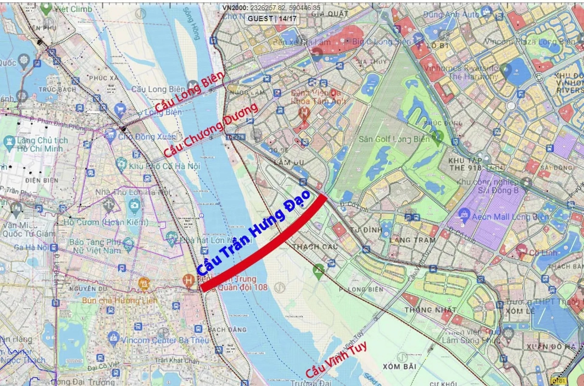 Vị trí triển khai xây dựng cầu Trần Hưng Đạo, bắc qua sông Hồng. Ảnh: Internet