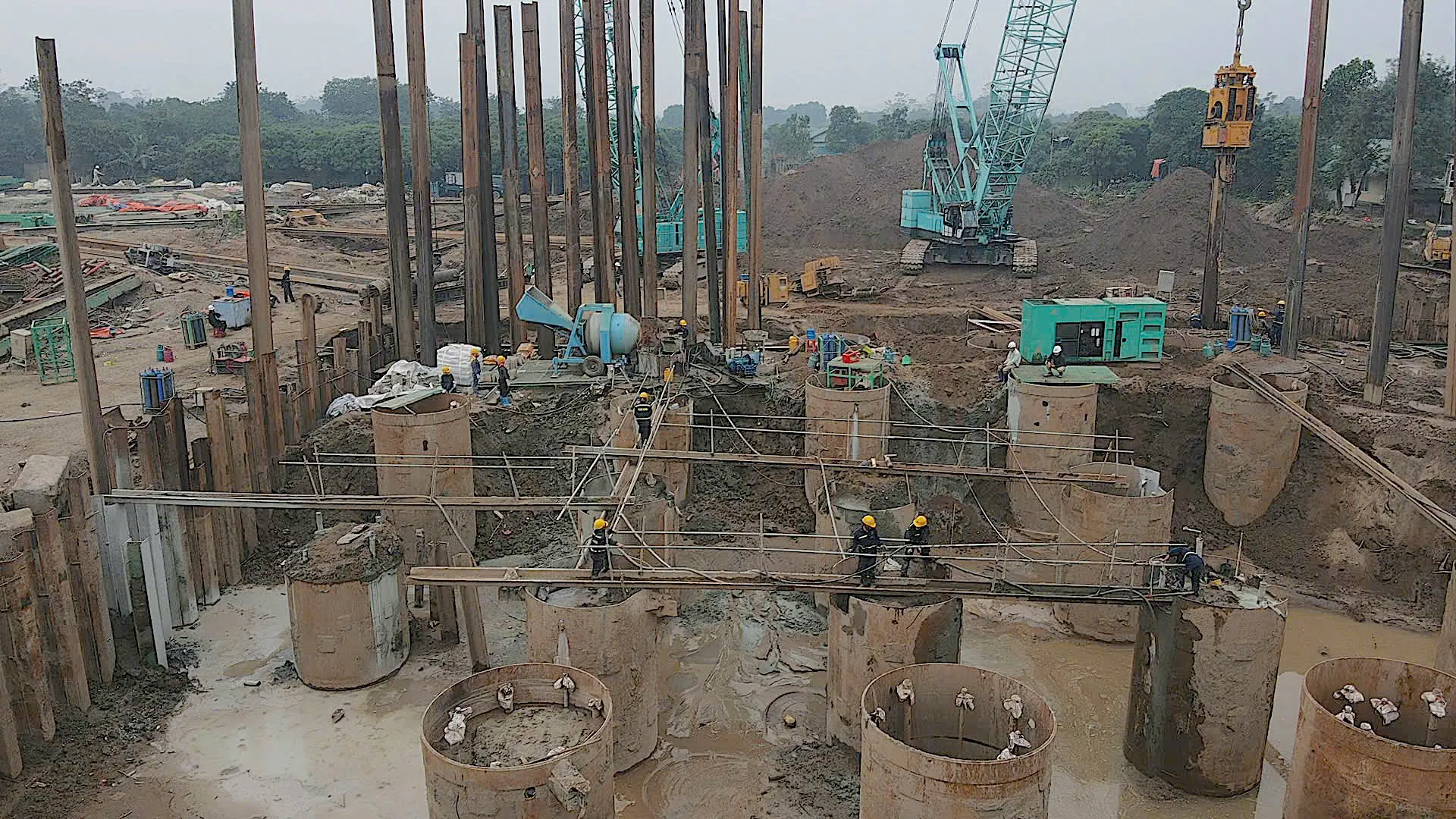 Cọc khoan nhồi cỡ lớn đang được nhà thầu thi công.