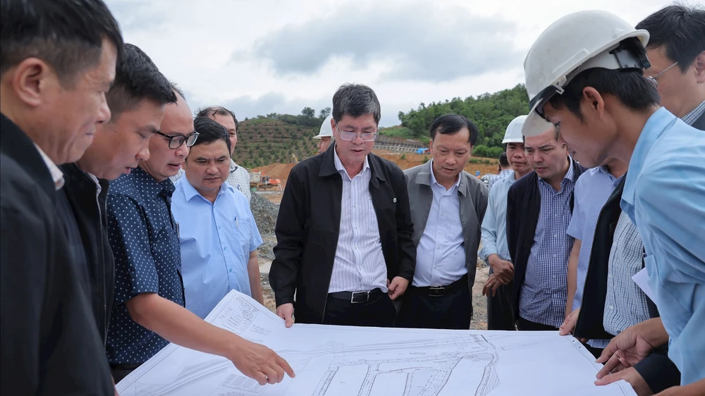 Ông Nguyễn Hồng Hải, Phó Chủ tịch UBND tỉnh đang khảo sát một dự án giao thông tại hiện trường.