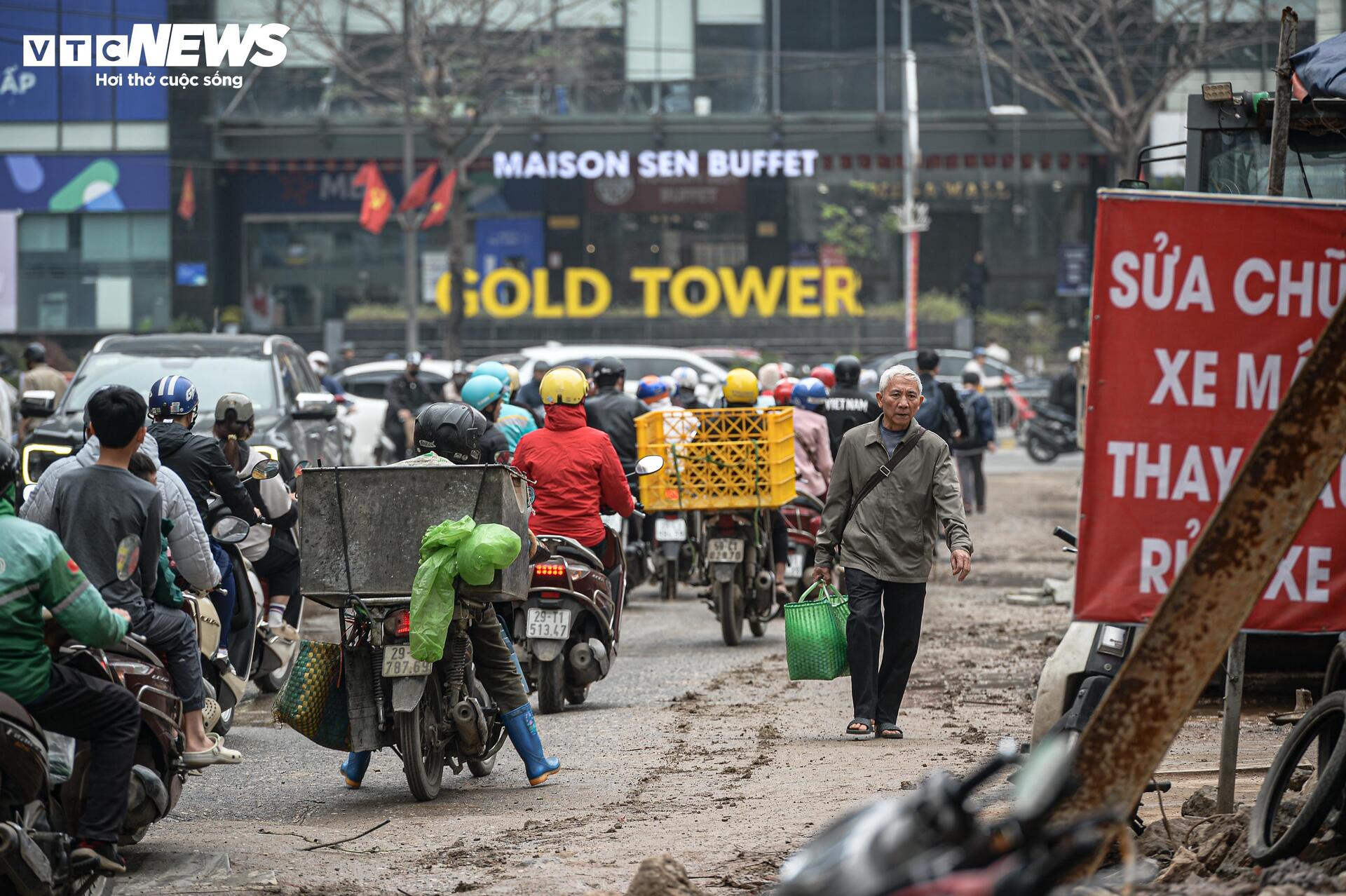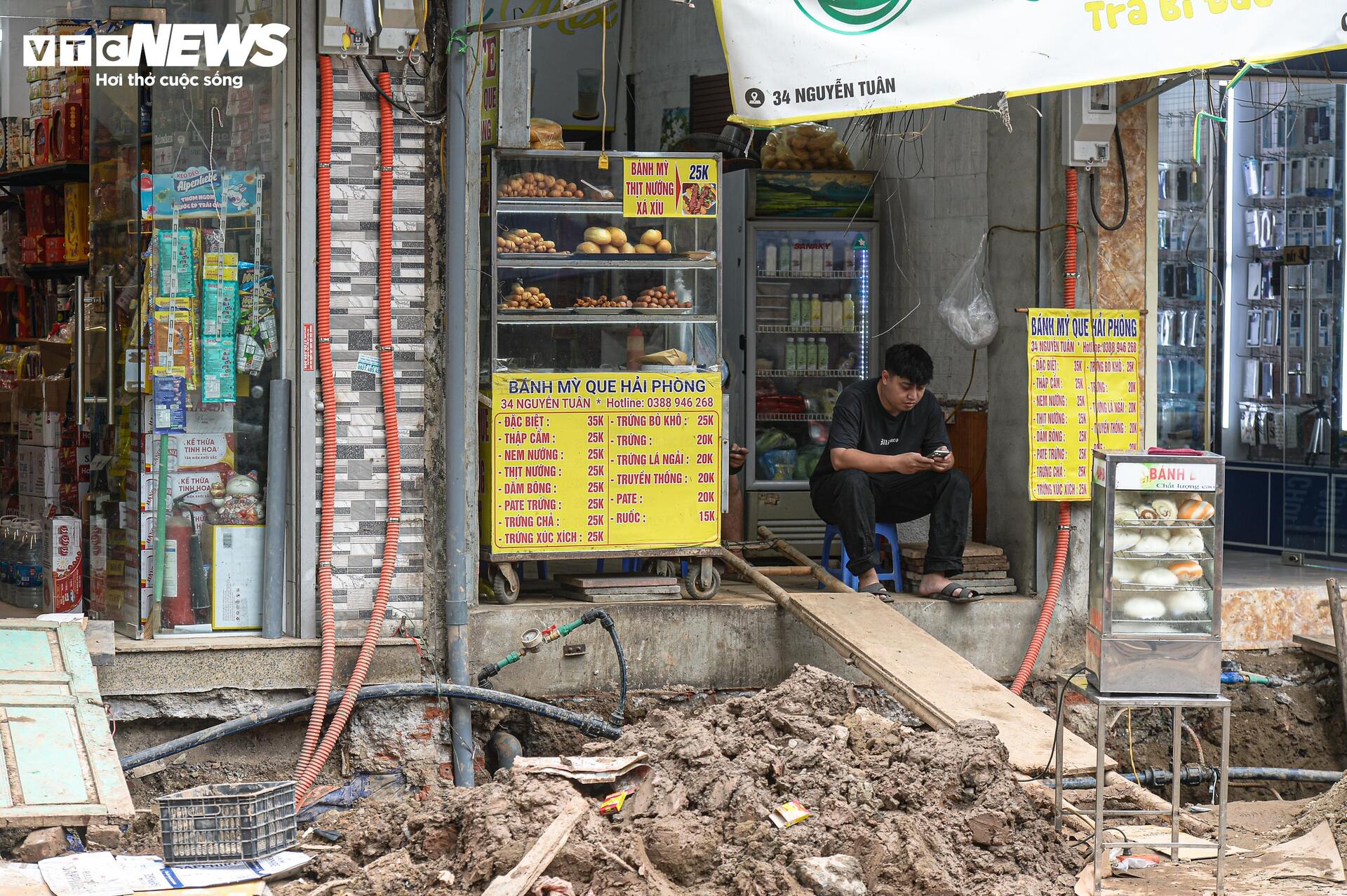 Không chỉ việc đi lại bị ảnh hưởng, hoạt động kinh doanh của các hộ dân dọc tuyến cũng gặp khó. Bùn đất bám vào giày dép khách ra vào khiến nhiều cửa hàng phải lau dọn liên tục. Có nơi khách ngại dừng xe do không còn khoảng trống trước cửa.