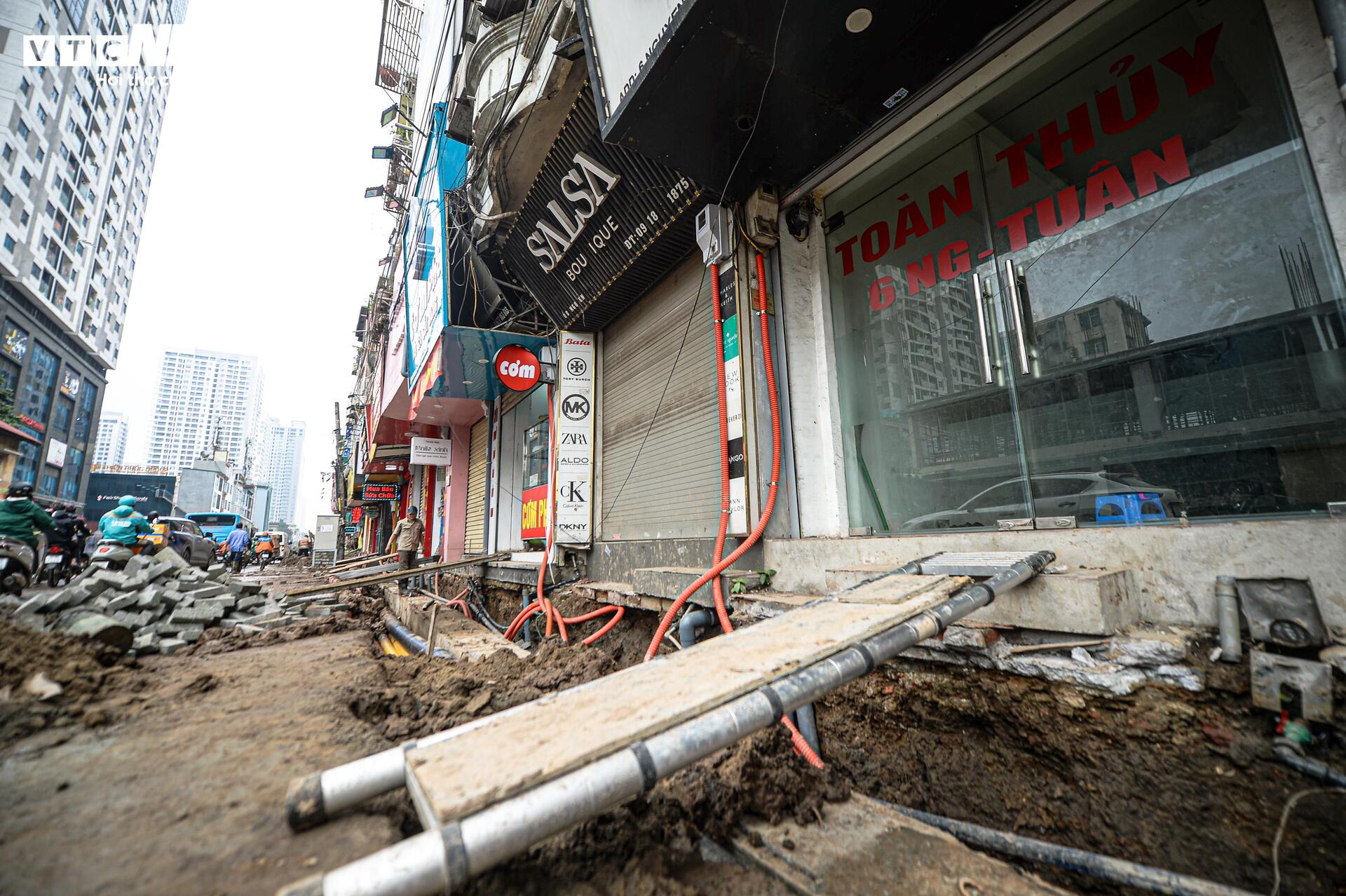 Bà Mai, chủ một cửa hàng bán quần áo trên phố Nguyễn Tuân, cho biết gần 10 ngày nay lượng khách giảm rõ rệt. “Phía trước cửa đang đào hệ thống thoát nước, khách đến không có chỗ gửi xe. Nhiều người quay xe đi luôn. Gần Tết, doanh thu sụt giảm khiến chúng tôi rất lo”, bà Hằng chia sẻ.
