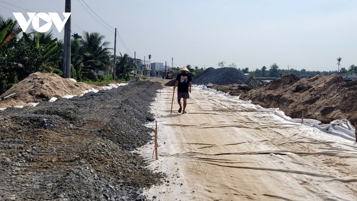 Ông Đỗ Hữu Phước, Phó Giám đốc Công ty Cổ phần Xây dựng Thủy lợi TICCO - Tiền Giang cho biết: “Tiến độ công trình hiện đạt gần 80%, dự kiến đến ngày 31-12 chắc còn phần thảm nhựa nữa là xong, cố gắng tăng ca thêm sẽ đạt tiến độ. Mình sẽ đưa thêm 1 đội thi công, 2 mũi làm đường nữa với các thiết bị xe lu. Hiện trên công trường có 3 khu vực với hơn 60 công nhân, thi công liên tục theo con nước, chỗ nào làm ban đêm được thì làm. Khó khăn nhất là khu vực cầu Đạo Thạnh vướng mặt bằng 80 mét, chưa giải phóng được. Vật liệu đang khan hiếm, mình cho 3-4 chiếc sà lan nằm đợi lấy về liền, sà lan đang nằm chờ sẵn”.