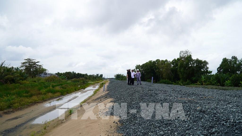 Ban quản lý dự án đường Hồ Chí Minh kiểm tra công trình, đoạn qua xã Vĩnh Tuy (An Giang). Ảnh: Văn Sĩ - TTXVN