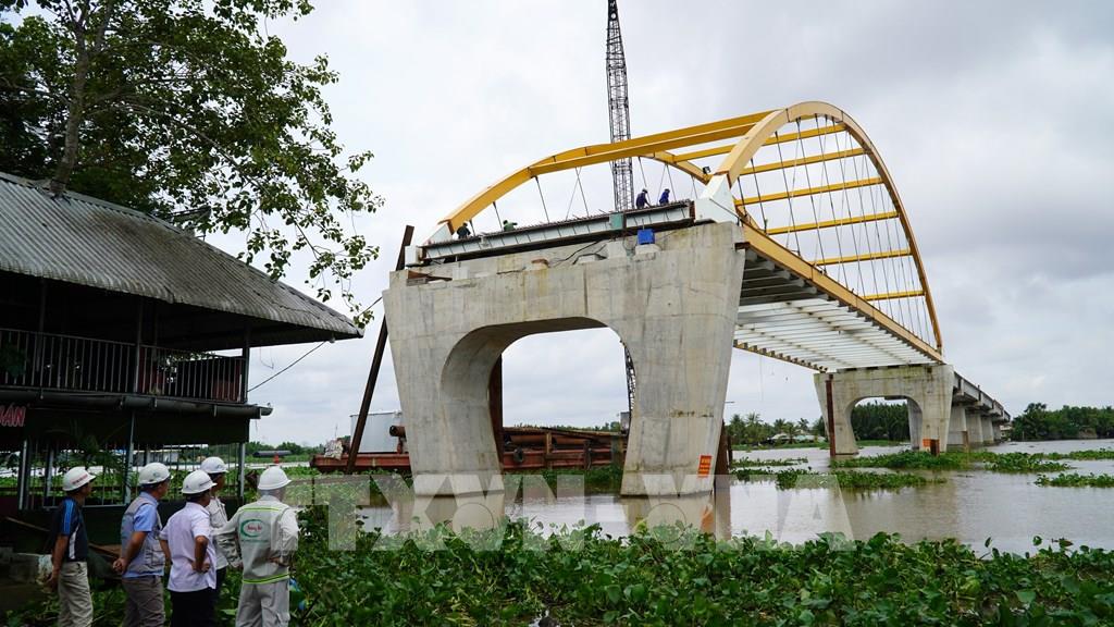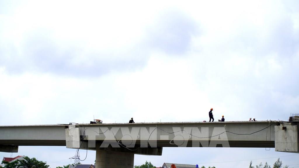 Công nhân thi công cầu Cái Lớn thuộc dự án đường Hồ Chí Minh. Ảnh: Văn Sĩ - TTXVN