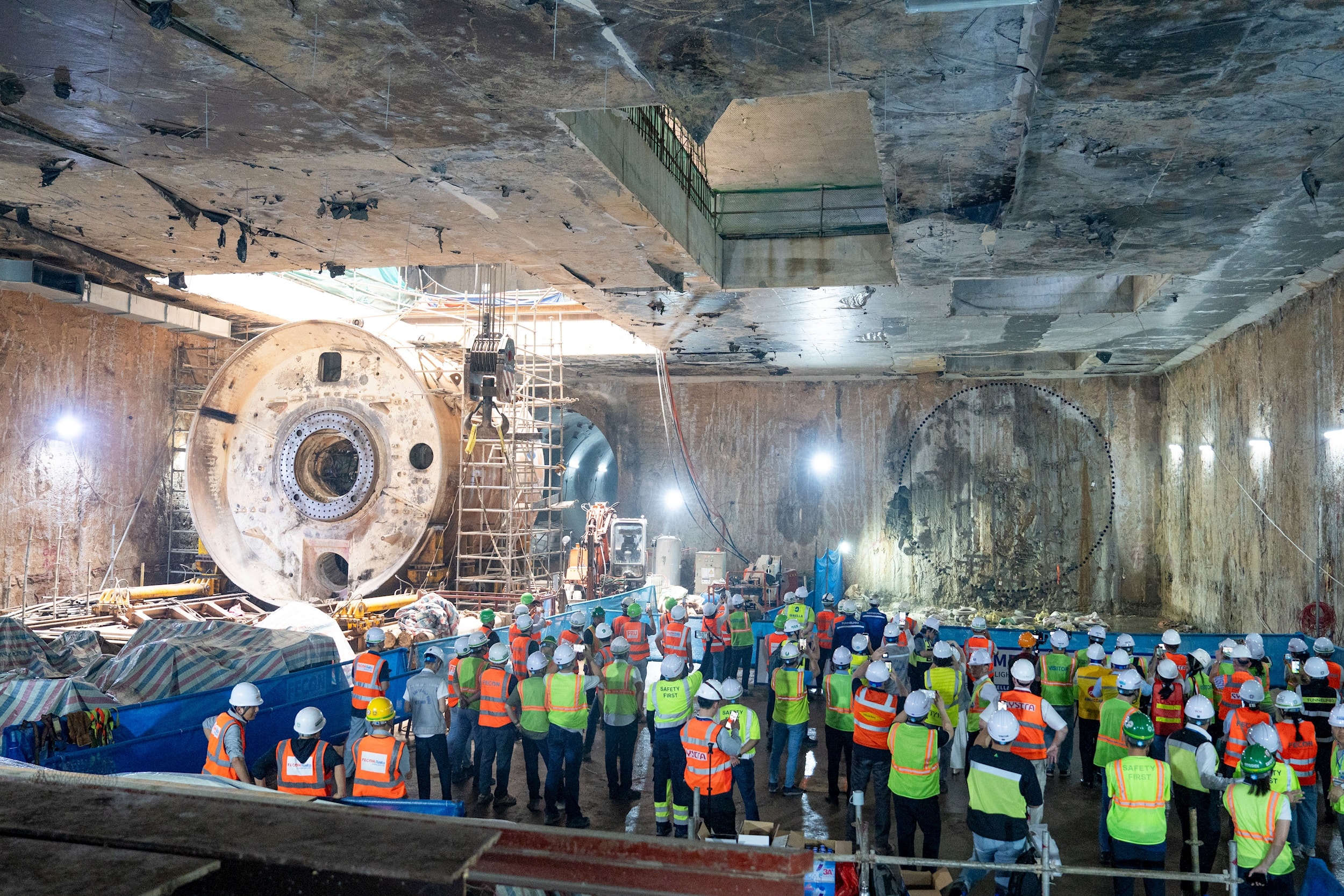 Máy đào hầm TBM số 2 mang tên "Táo bạo" đã chính thức về đích an toàn tại ga ngầm S12. Ảnh: Tuấn Lương