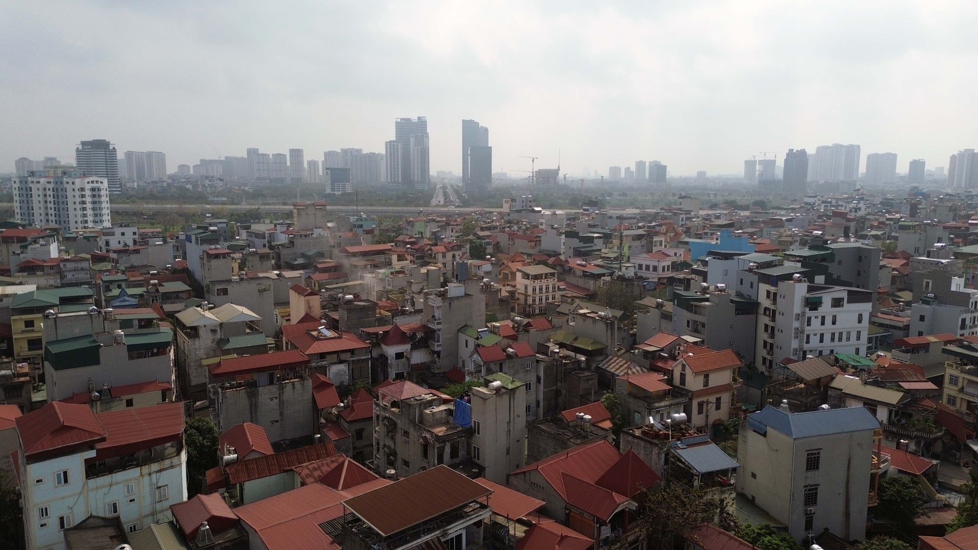 Tuyến đường có chiều dài khoảng 3,2km, quy mô mặt cắt ngang 60,5m với 10 làn xe. Trên tuyến sẽ được xây dựng cầu bắc qua sông Nhuệ. Trong ảnh là nhà dân dày đặc đoạn gần cầu vượt sông Nhuệ đến Phạm Văn Đồng.