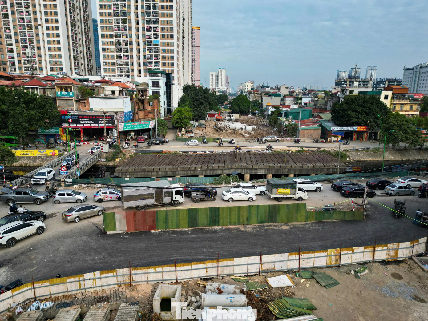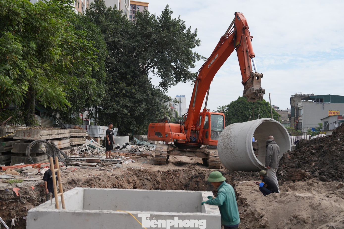 Máy móc, thiết bị, vật liệu thi công được tập kết ở đường Hà Kế Tấn và các tuyến xung quanh để phục vụ công tác thi công.
