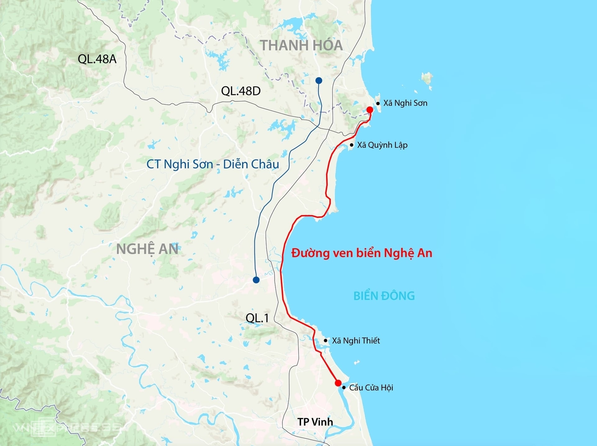 Đồ họa hướng tuyến đường ven biển tỉnh Nghệ An. Đồ họa: Hoàng Khánh