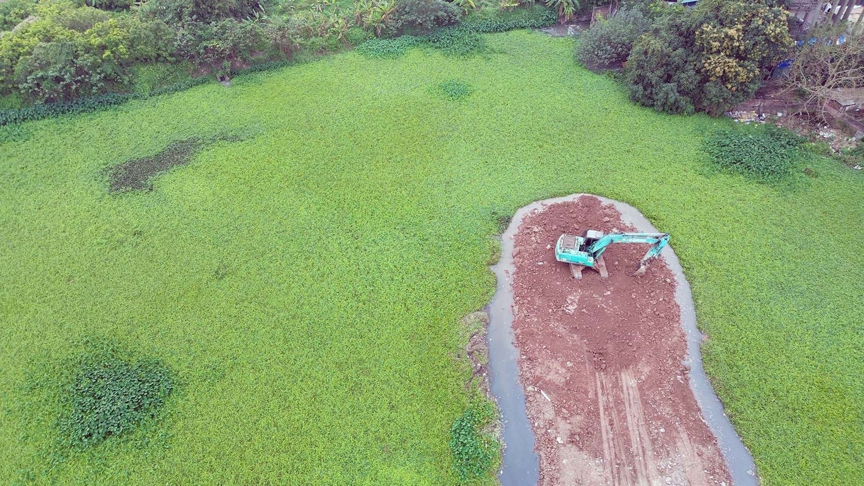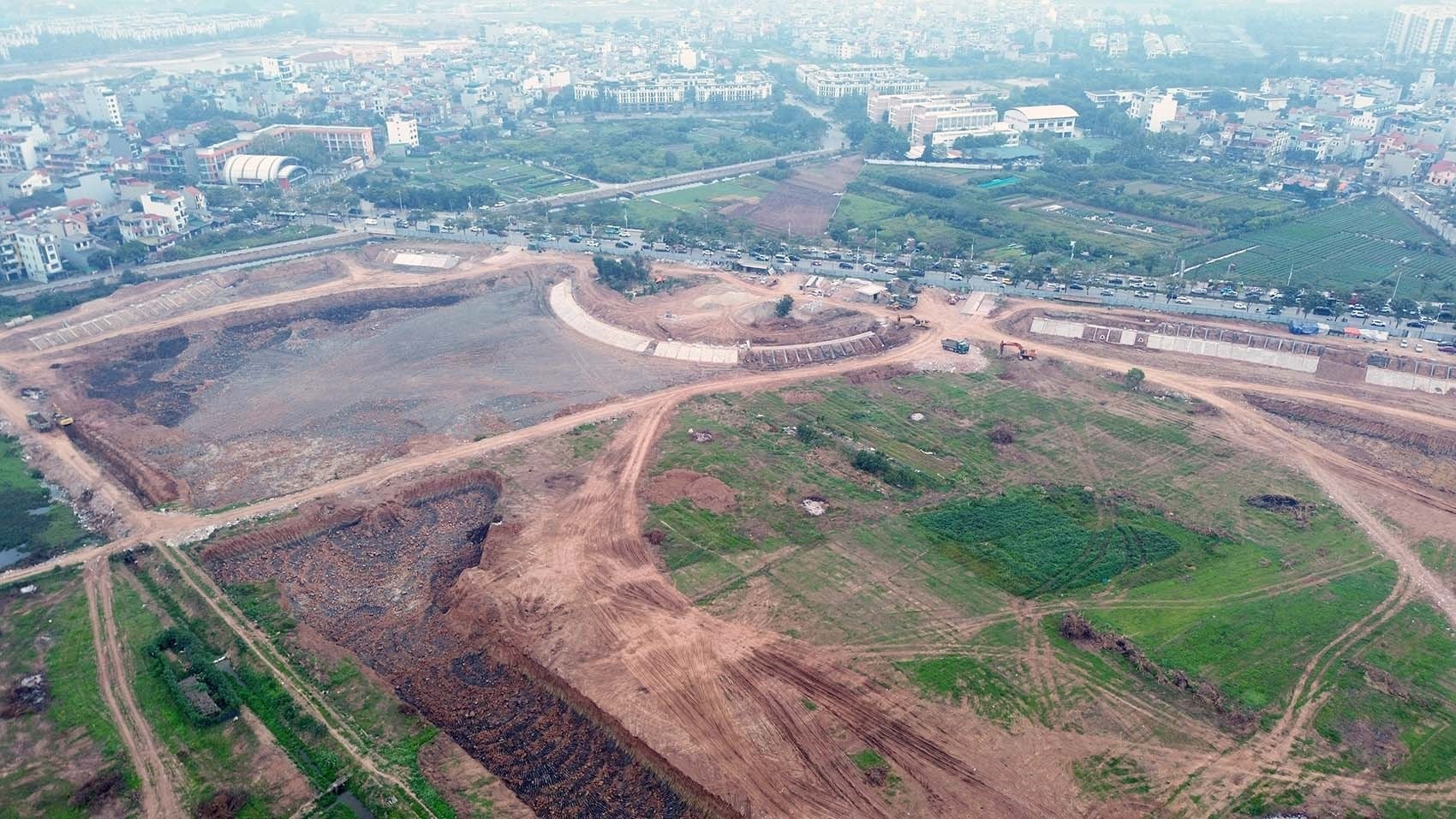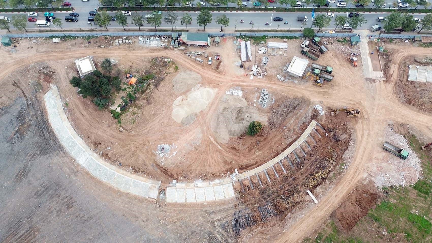 Nhà thầu đang tập trung triển khai dọn dẹp mặt bằng và đào hồ điều hòa.
