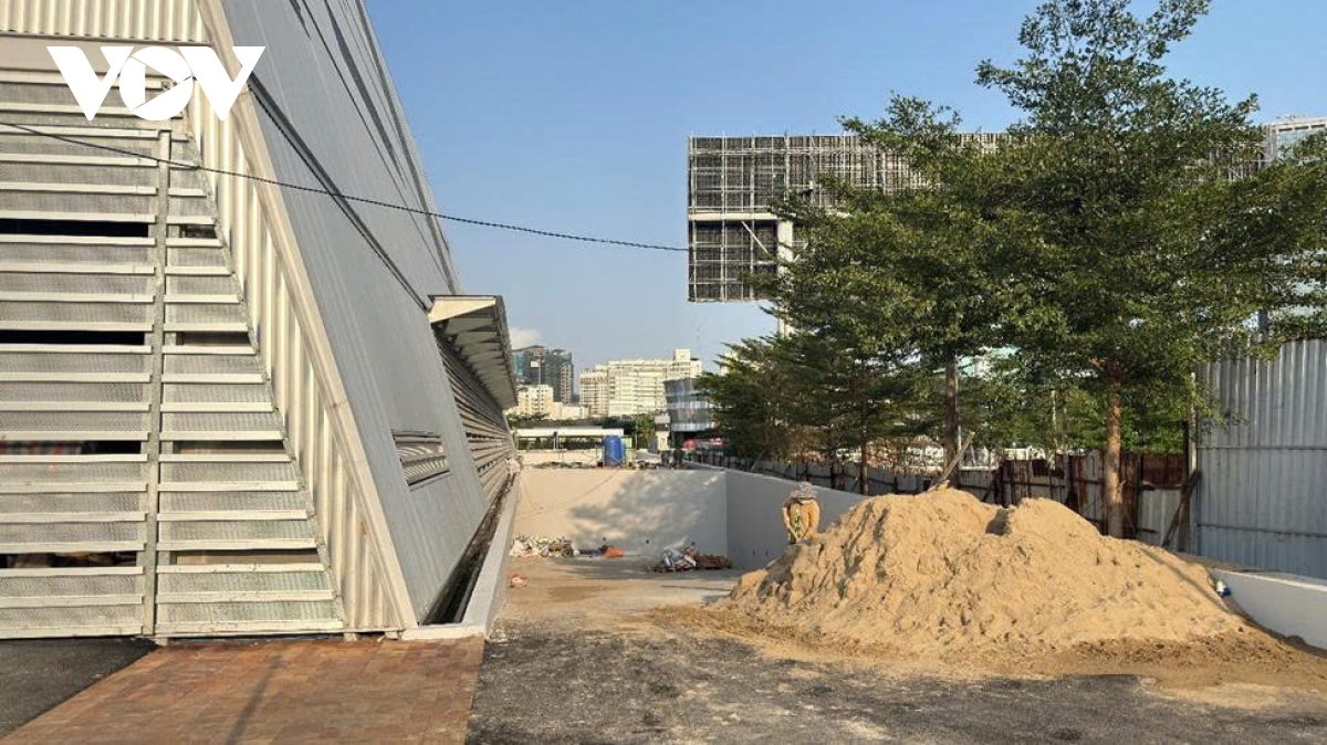 Ghi nhận tại hiện trường cho thấy công trường vẫn trong tình trạng ngổn ngang, vật liệu xây dựng tập kết rải rác, chưa thể hiện được sự gọn gàng, hoàn thiện của một dự án đang ở giai đoạn về đích.