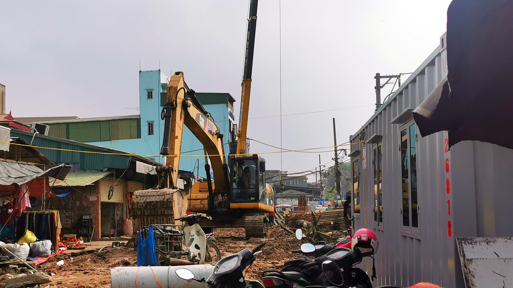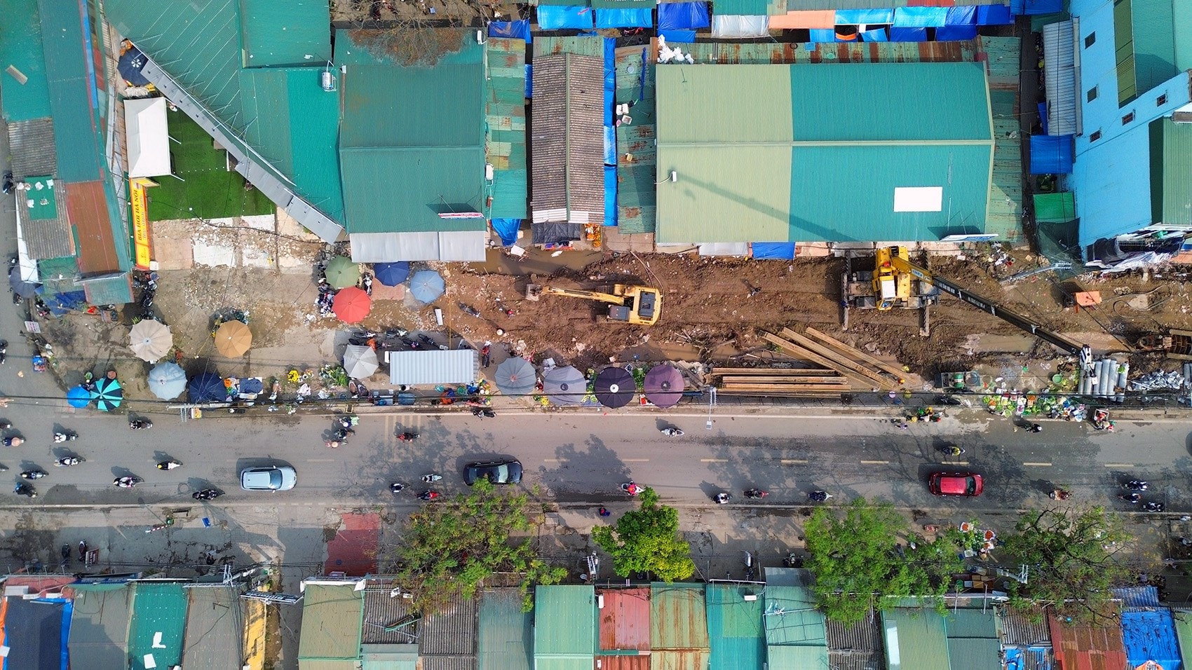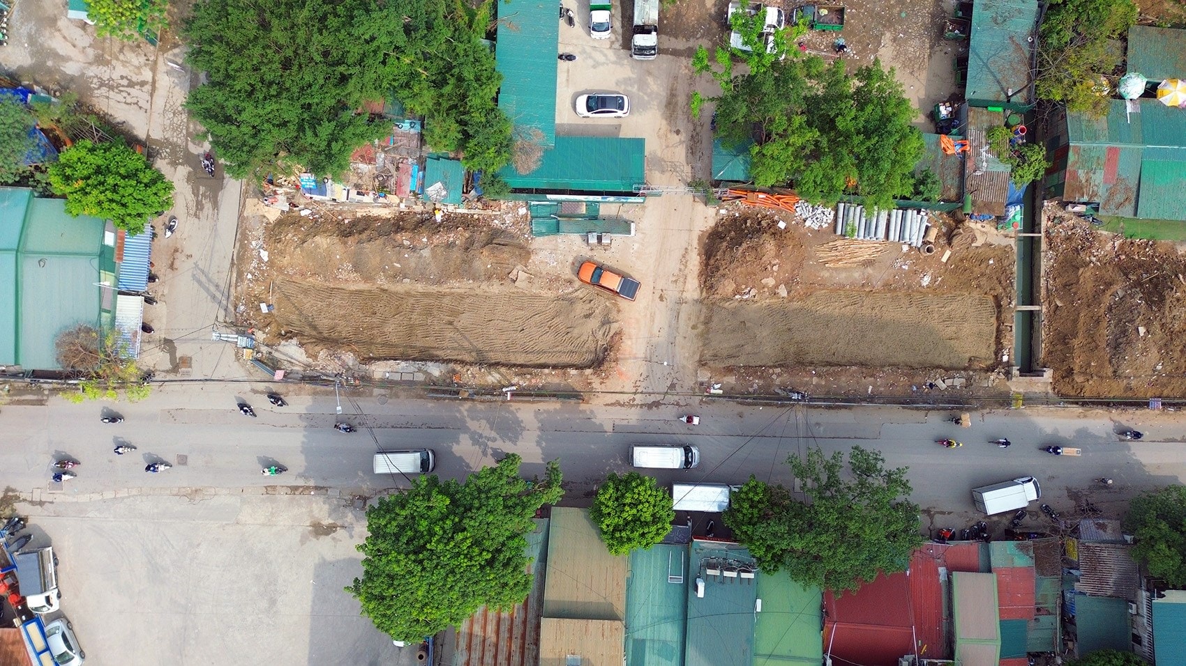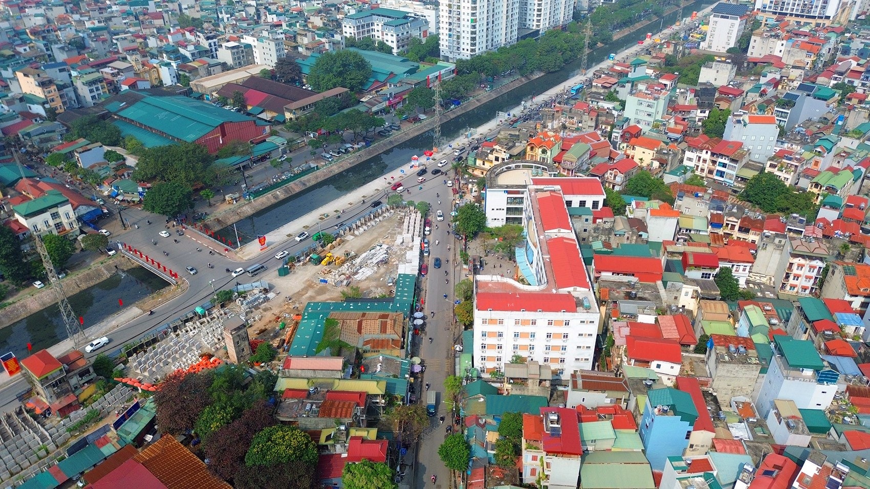 Công trình có chiều dài khoảng 3,4km, điểm đầu tại nút giao Tam Trinh, điểm cuối tại nút giao đê Nguyễn Khoái. Một phần tuyến đường là đoạn tuyến Vành đai 2,5 Hà Nội. Trong ảnh: Dự án bắt đầu thi công đoạn chợ Lòng Thuyền.
