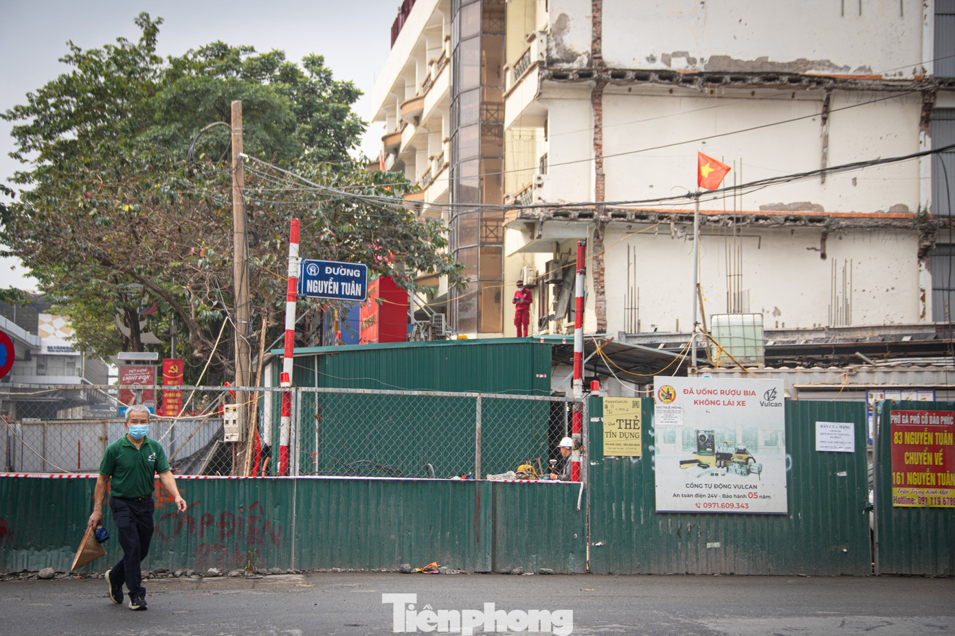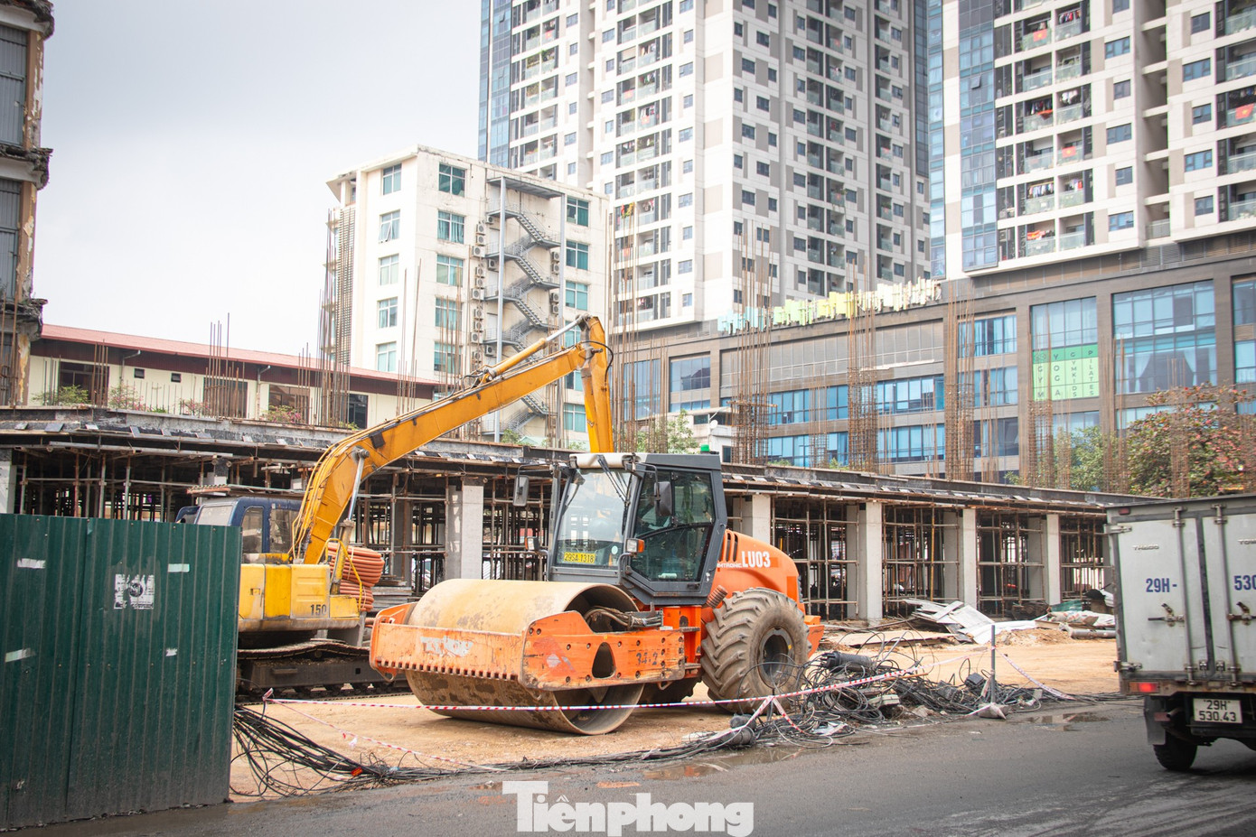 Hiện nhà thầu đang huy động nhân lực thi công đá lát vỉa hè và các công trình ngầm đoạn đã mở rộng.