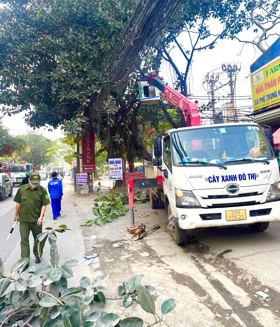 Phường Vĩnh Hưng ra quân cắt tỉa cây xanh, chỉnh trang mặt bằng, tạo tiền đề triển khai Dự án nâng cấp, mở rộng đường Lĩnh Nam.