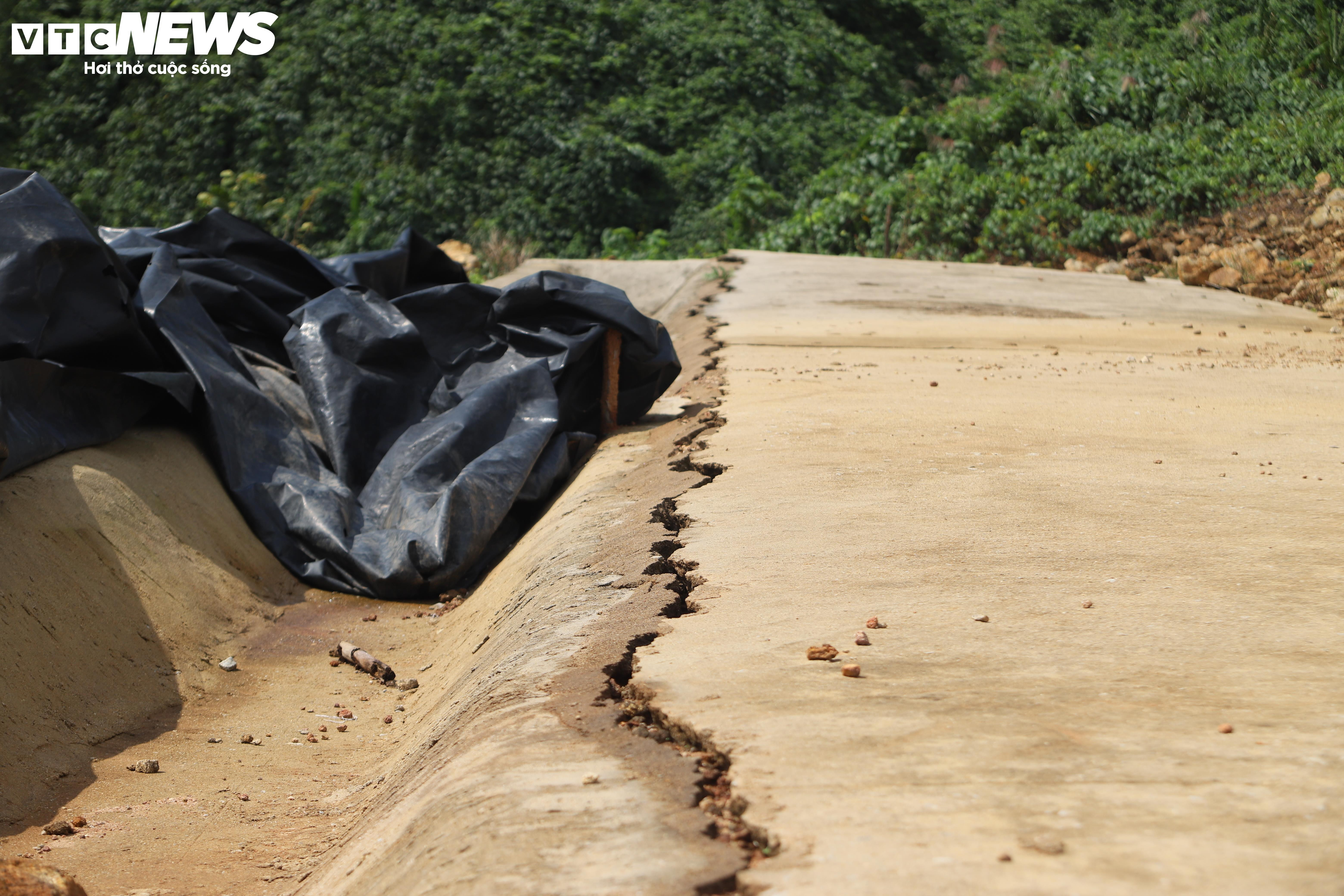 Một đoạn ta luy âm bị hở hàm ếch, những tấm bạt dày, lớn vốn dùng để gia cố, hạn chế việc xói lở nhưng nay cũng bị cuốn phăng.