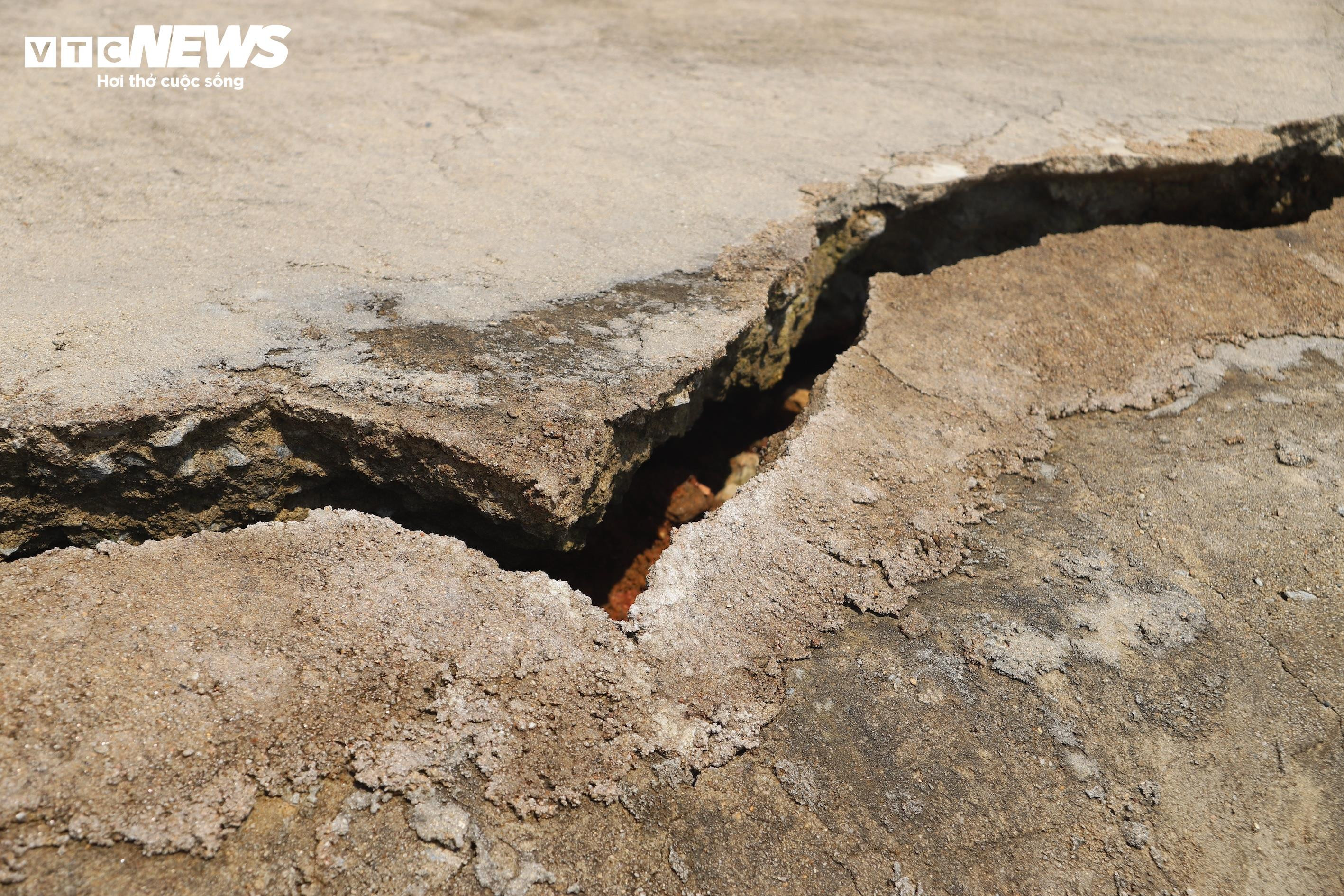 Đoạn đường bê tông và rãnh nước trong dự án xuất hiện những đoạn nứt dài và khá sâu.