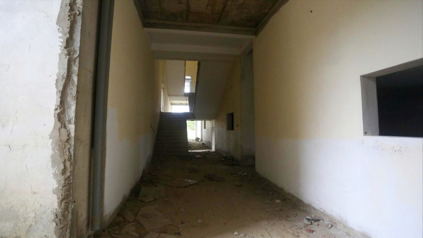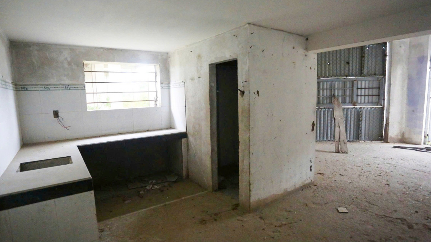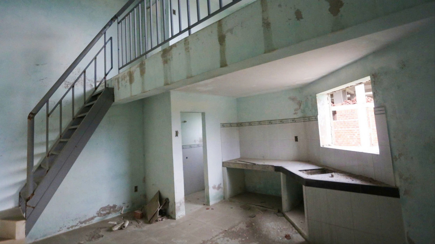 Bên trong một căn hộ thuộc dự án bỏ hoang lâu ngày. Theo chính quyền địa phương, khu nhà ở dành cho người có thu nhập thấp này mới hoàn thành phần thô 1 khối chung cư, 2 khối còn lại đang xây dựng dở dang. Dự án tạm dừng do chưa được gia hạn thời gian thực hiện và đang chờ kết luận của Cơ quan Cảnh sát điều tra, hiện thuộc Công an TP. Đà Nẵng.