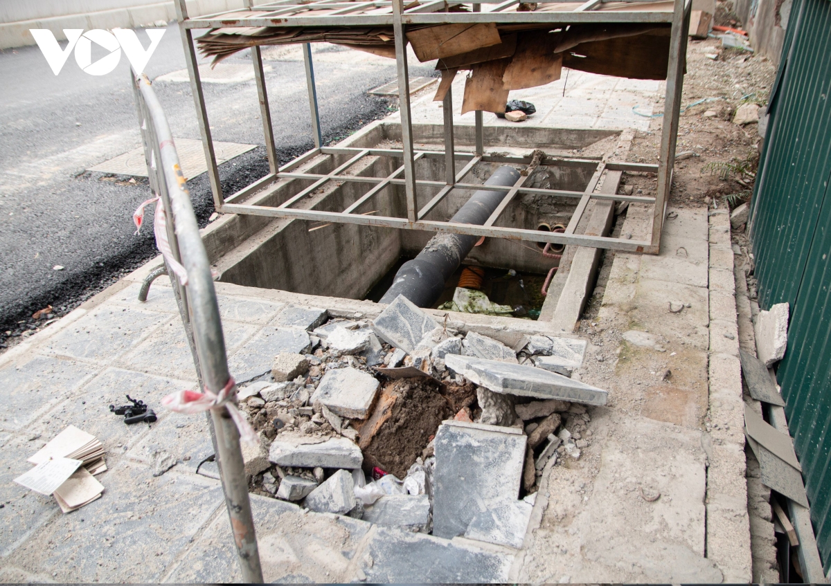 Ở một số khu vực, hệ thống hố ga thu, thoát nước cũng thi công dang dở nhưng không có rào chắn xung quanh để đảm bảo an toàn cho người dân đi lại trong khu vực.