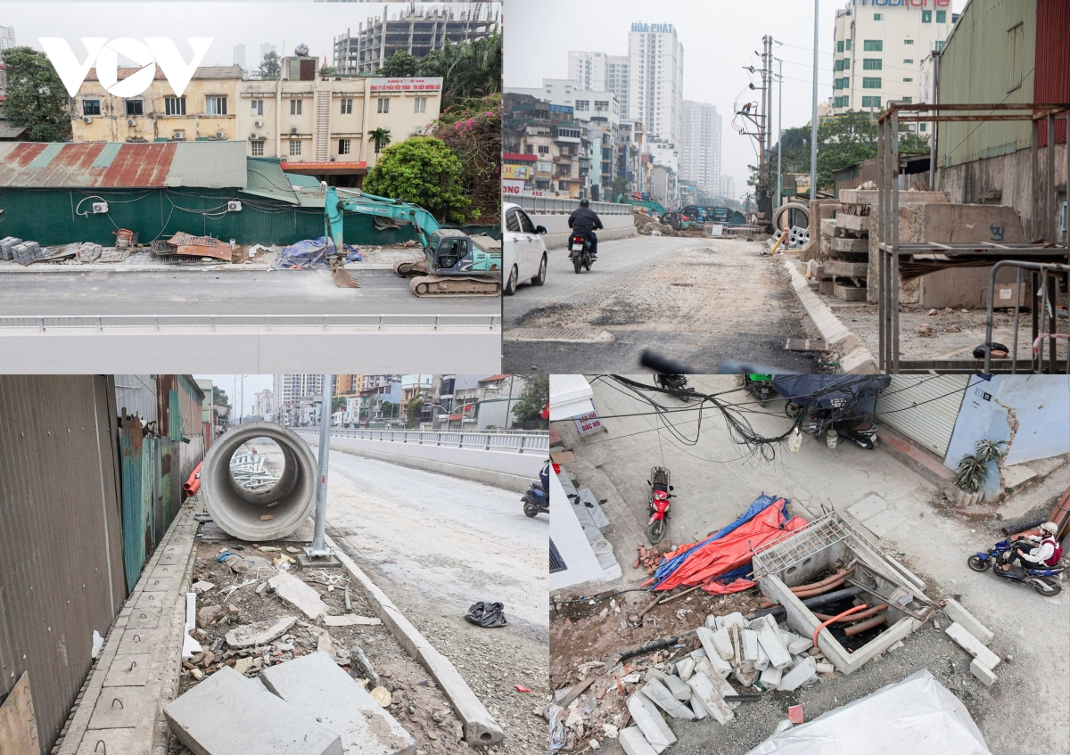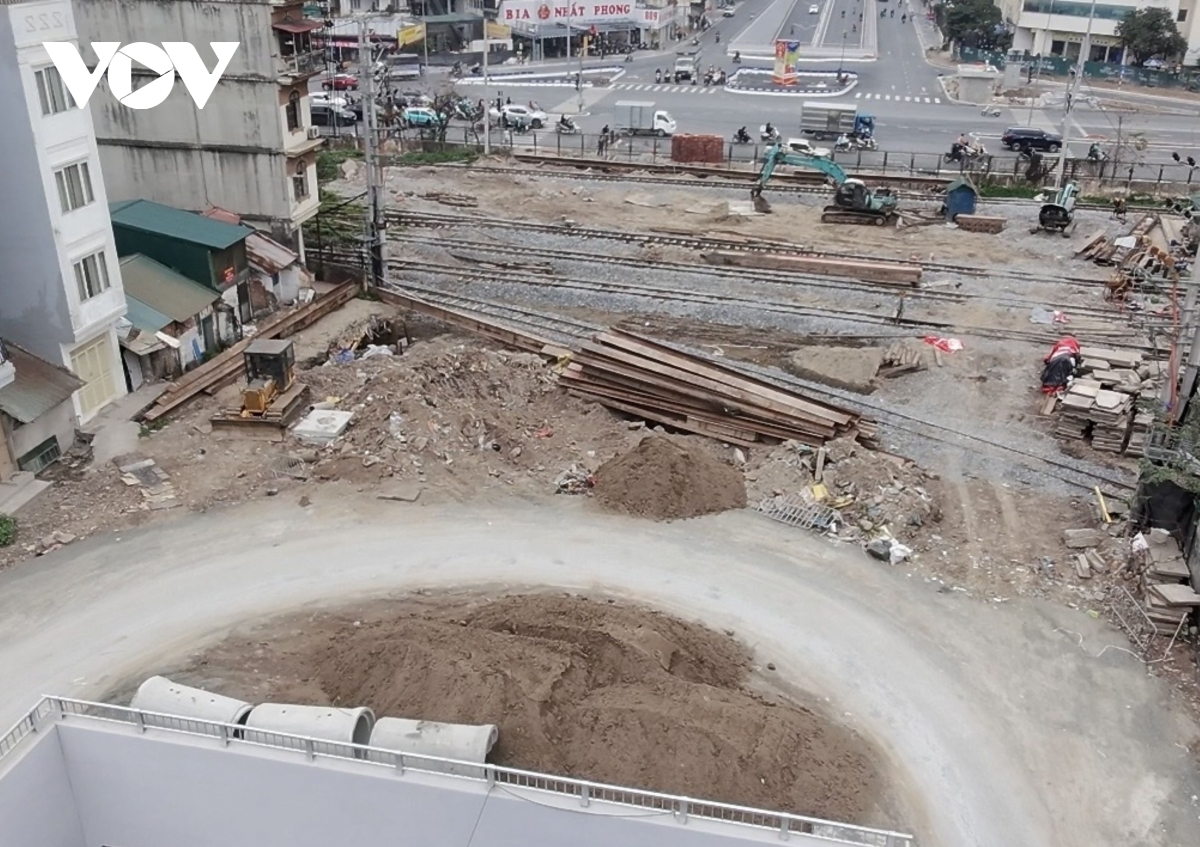 Cụ thể, tại trung tâm nút giao, phần mặt bằng hầm chui qua ga Giáp Bát cũng chưa xong việc thi công hoàn trả mặt bằng.