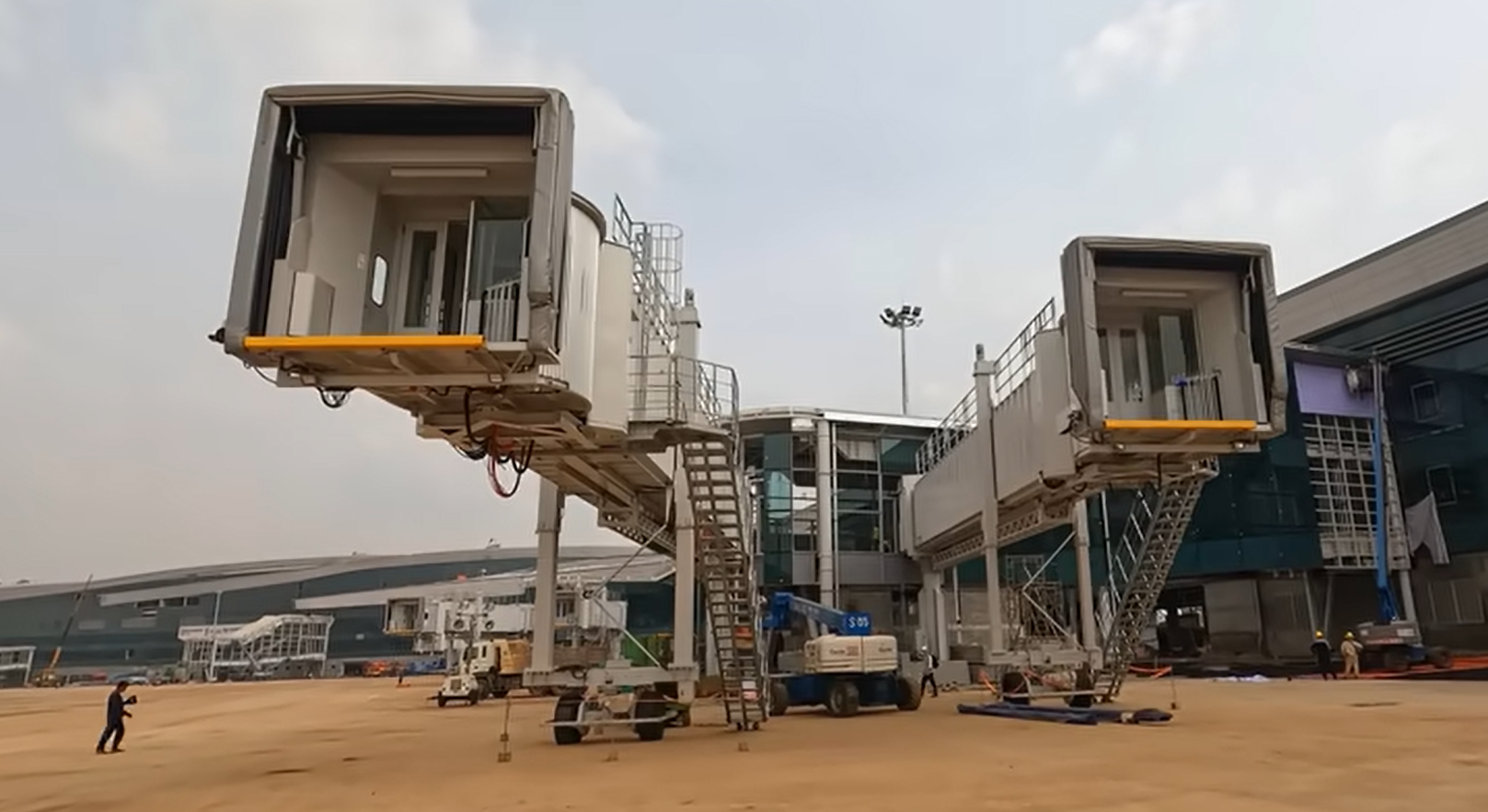 Các cầu thang dẫn ra ống lồng tại điểm đỗ máy bay cũng đã hoàn thiện. Ảnh: Nguyễn Kiệt