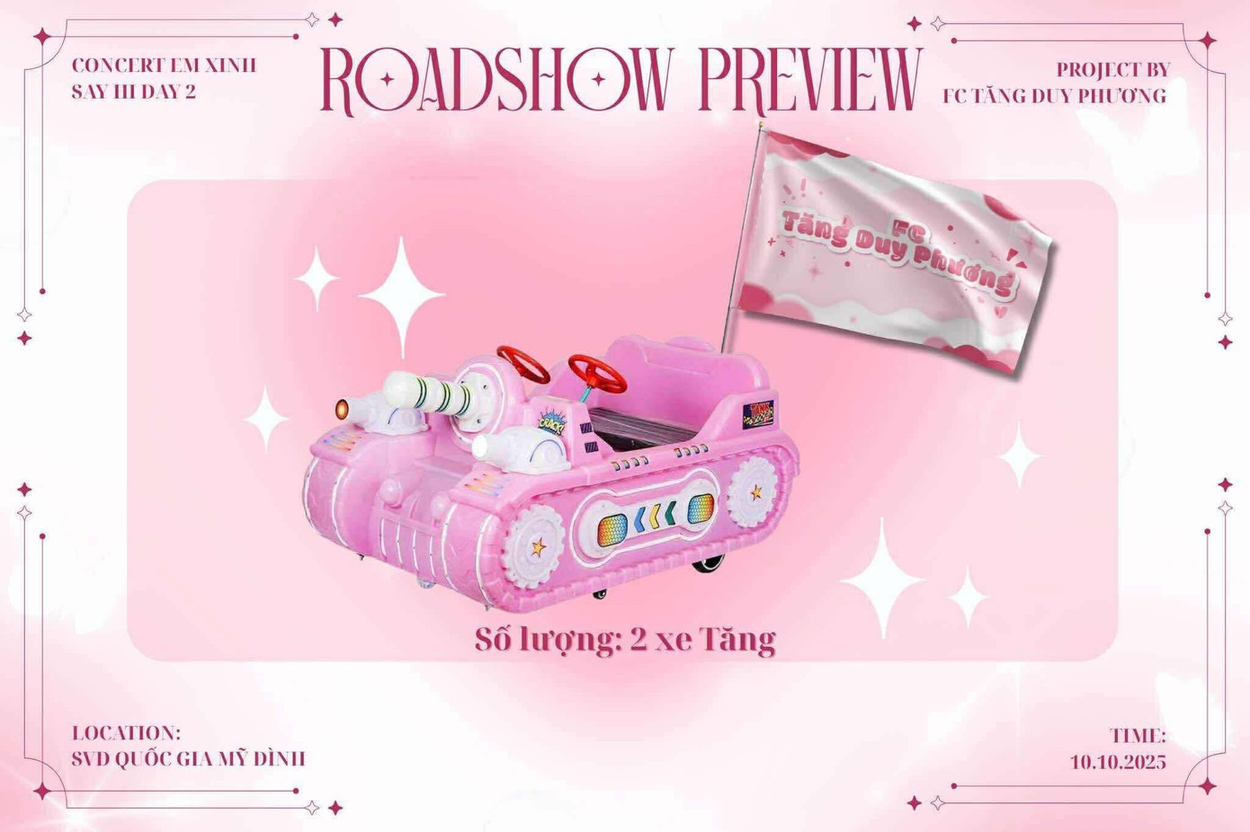 Spotlight của dự án tiếp ứng lần này đổ dồn về “The Best OTP” - Tăng Duy Tân và Bích Phương. FC của cặp đôi đã tổ chức một roadshow diễu hành độc đáo, sử dụng dàn xe trang trí theo phong cách “mini toy car” đáng yêu, khiến không khí thêm sôi động.