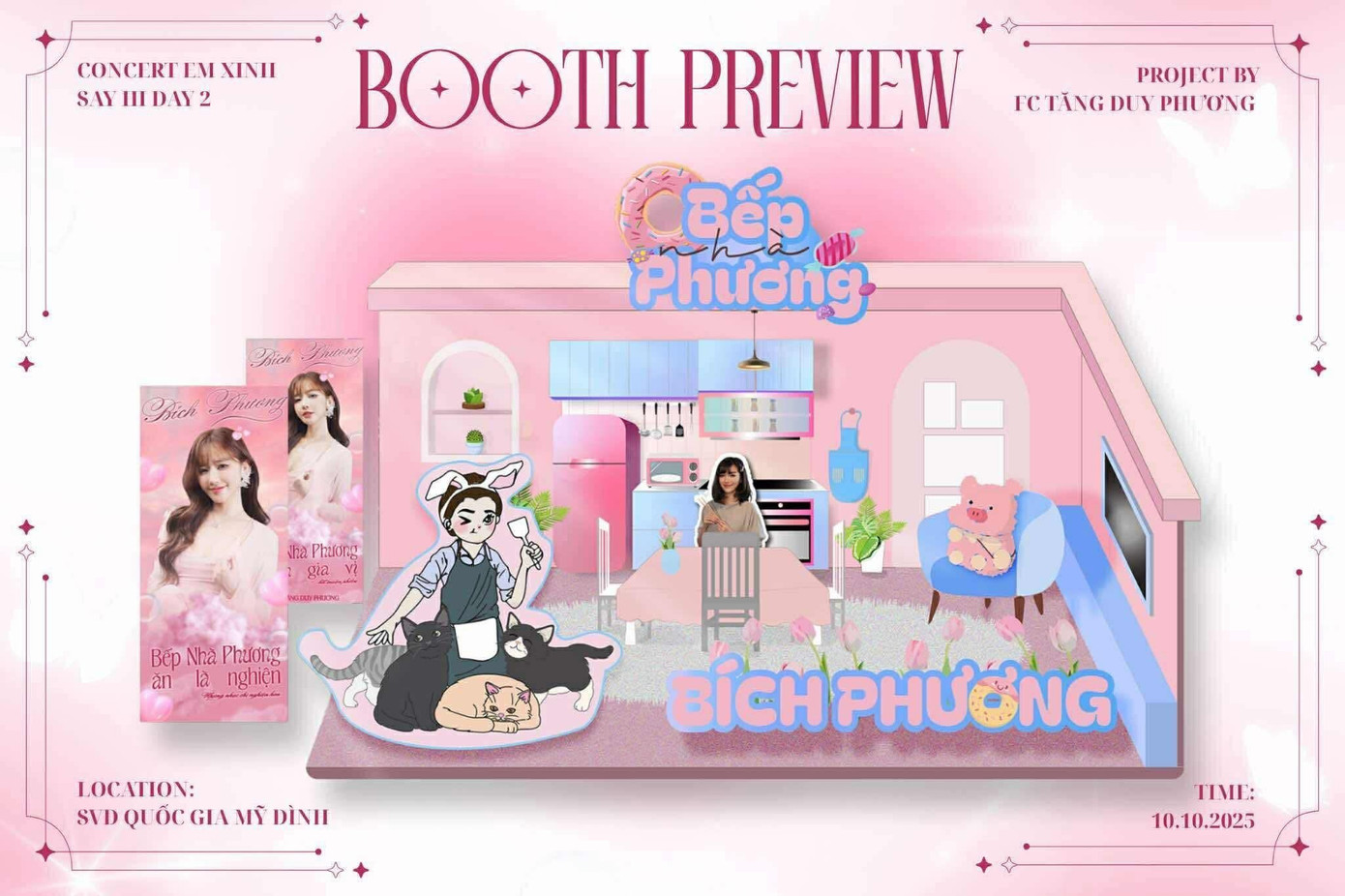 FC“Tổ Cò” của Phương Mỹ Chi dựng booth công phu, không chỉ là điểm check-in lý tưởng mà còn trở thành “điểm dừng chân” dành cho khán giả nhận quà và lan tỏa thông điệp yêu thương. Không dừng lại ở đó, booth còn đồng hành cùng các hoạt động roadshow và LED show hoành tráng, mang đến trải nghiệm tương tác sôi động cho người hâm mộ.