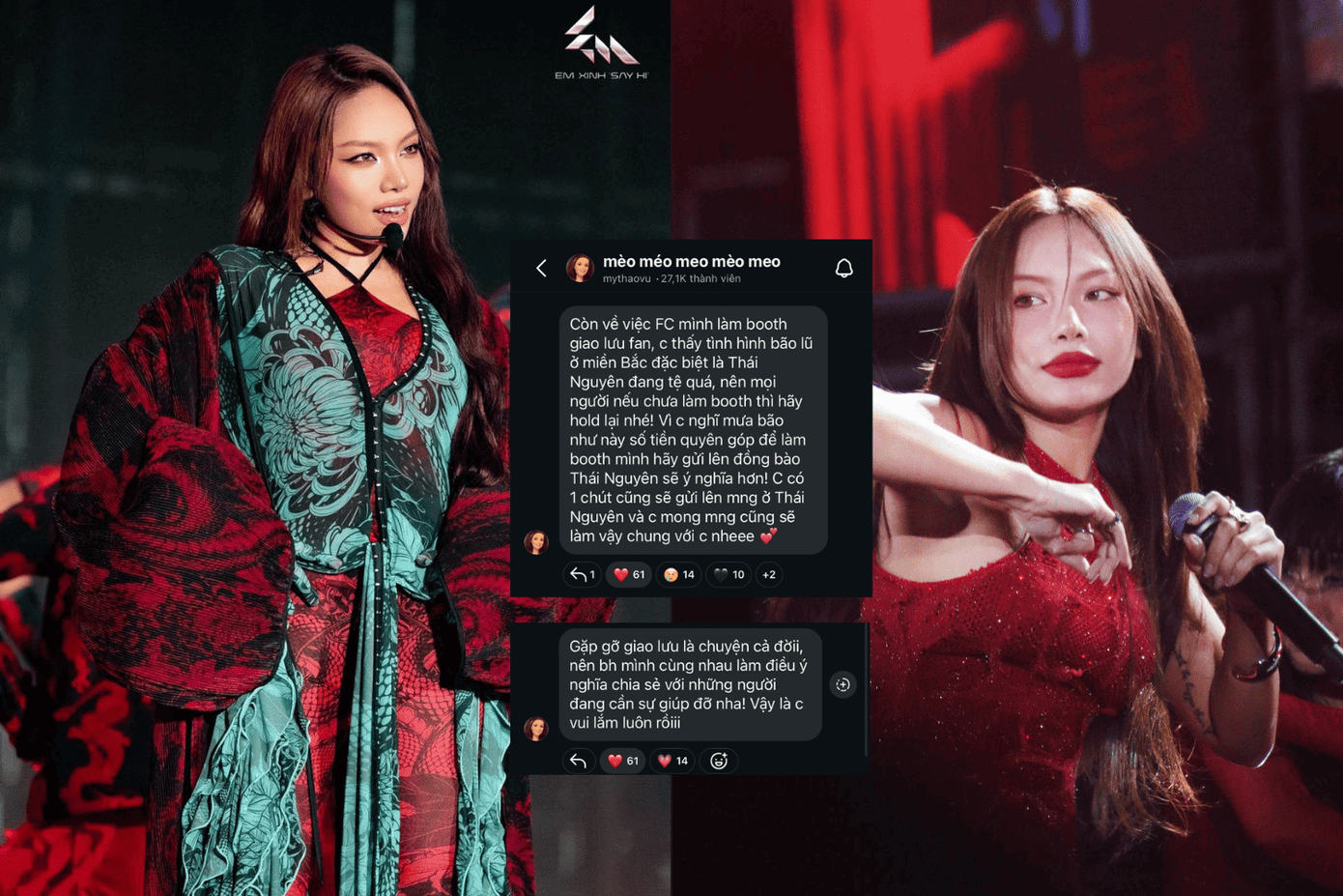 Tuy nhiên, trong thời điểm miền Trung và miền Bắc đang chịu ảnh hưởng của đợt mưa bão diện rộng, tinh thần của các “Em Xinh” không chỉ dừng lại ở những hoạt động trên sân khấu. Nhiều nghệ sĩ đã thể hiện sự tinh tế và trách nhiệm xã hội khi khuyến khích người hâm mộ chuyển hướng nguồn kinh phí từ các dự án cổ vũ sang quyên góp, ủng hộ đồng bào vùng lũ.