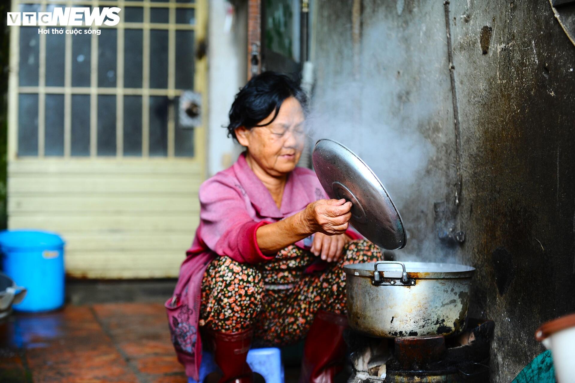 Do không gian chật hẹp, mọi người phải tận dụng vỉa hè, mái hiên để nấu nướng tạm bợ.