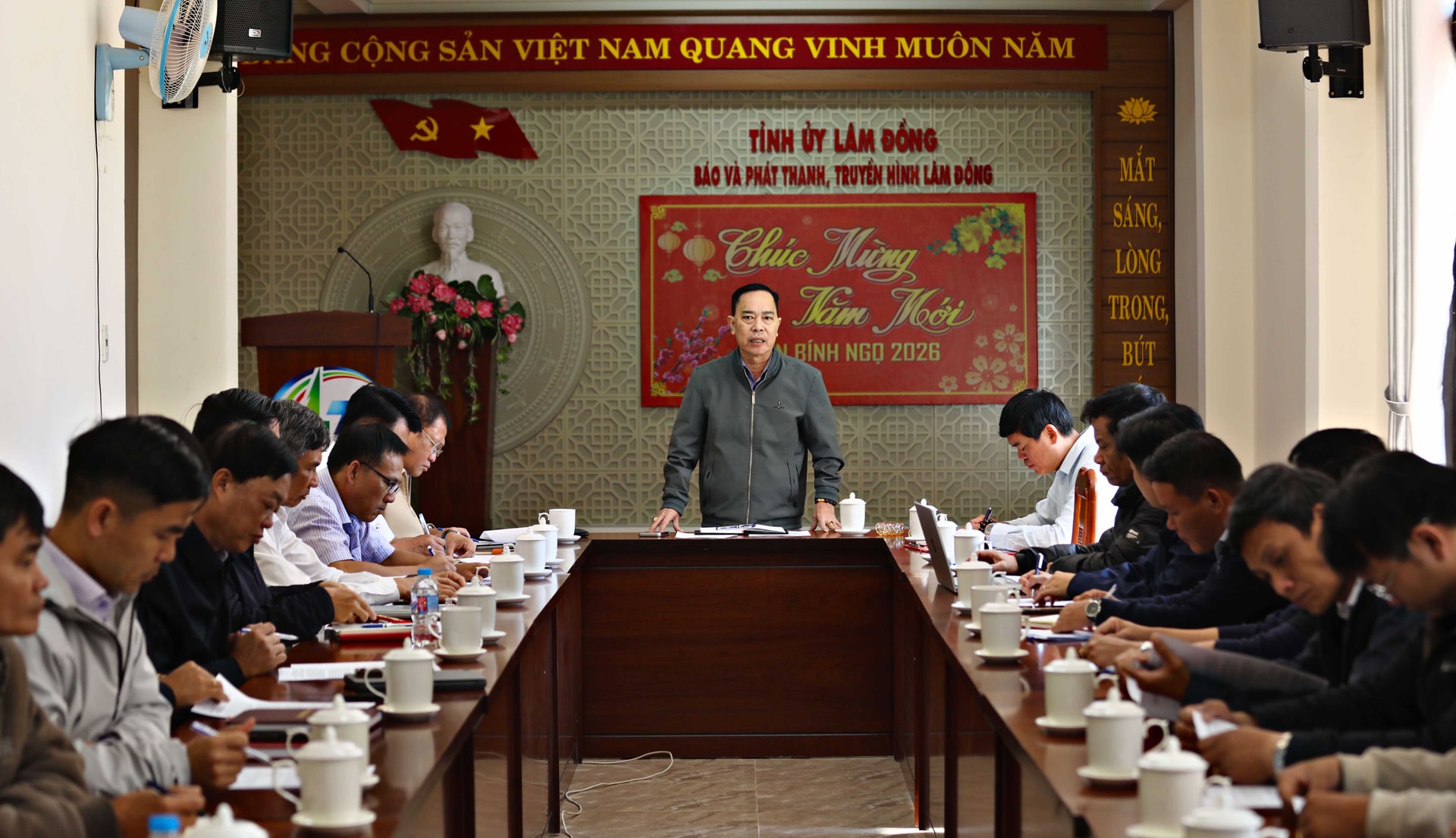 Giám đốc Báo và PTTH Lâm Đồng Lê Huy Toàn thông tin thêm, tiến độ dự án xây dựng trụ sở mới của Báo và PTTH Lâm Đồng đã quá chậm chạp, chây ì, trì trệ trong suốt thời gian dài. Với vai trò là chủ đầu tư, chúng tôi kiên quyết nói không với việc gia hạn. Ngay từ bây giờ, nhà thầu bằng mọi cách phải huy động tổng lực để tổ chức thi công tăng ca, tăng kíp, bất kể ngày đêm, kể cả thứ 7, chủ nhật, làm sao đến mốc 30/4/2026 phải cơ bản hoàn thành gói thầu số 8 - gói thầu thi công xây dựng, cung cấp lắp đặt thiết bị trụ sở.