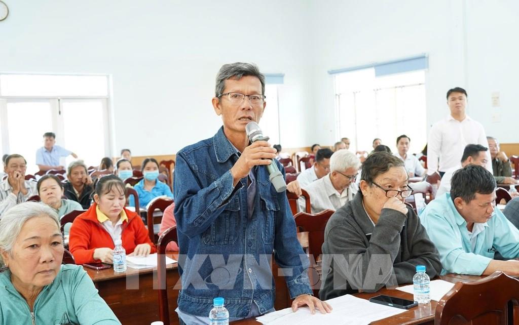 Người dân xã Phước Vĩnh Tây, tỉnh Tây Ninh, nêu kiến nghị liên quan đến giải phóng mặt bằng thực hiện dự án Vành đai 4. TP. Hồ Chí Minh. Ảnh: Bùi Giang - TTXVN
