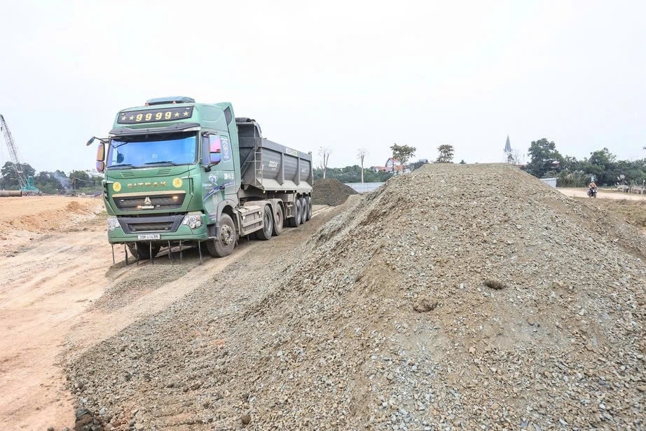 Vật liệu được nhà thầu tập kết về công trường. Ảnh: Tạ Hải