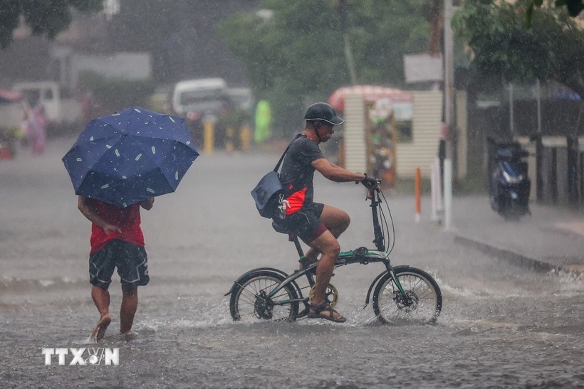 Cảnh ngập lụt sau những trận mưa lớn do ảnh hưởng của bão Wipha tại Quezon, Philippines. Ảnh: THX/TTXVN.