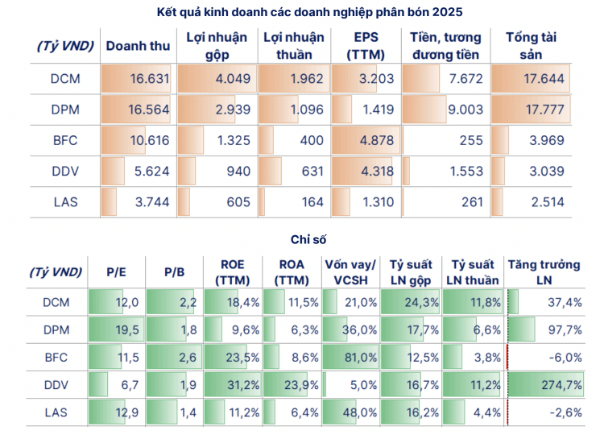 Thực tế trước đó cho thấy, nhờ được hưởng lợi từ việc giá nguyên vật liệu đầu vào thấp và giá phân bón trong nước neo ở mức nền cao, các doanh nghiệp trong ngành đều ghi nhận kết quả kinh doanh 2025 khá tích cực.