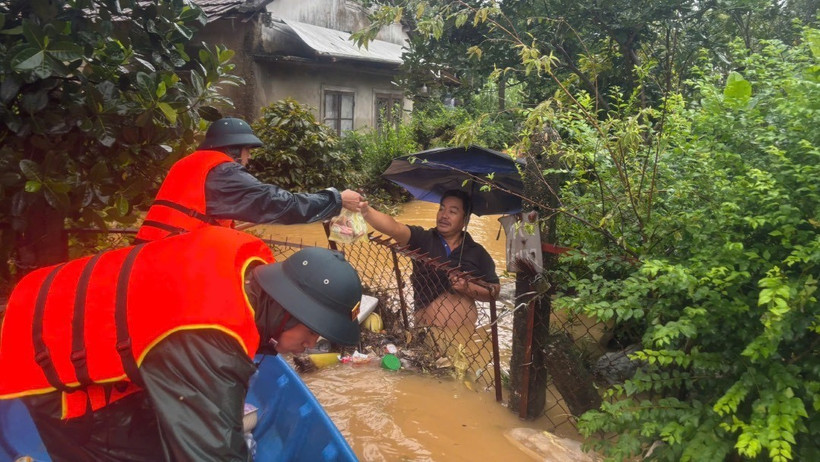 Lực lượng vũ trang thành phố Huế đã hỗ trợ sơ tán hàng nghìn hộ dân và đang tiếp tục hoạt động cứu trợ khi nước còn đang cao. (Ảnh: Dương Quang Tiến)