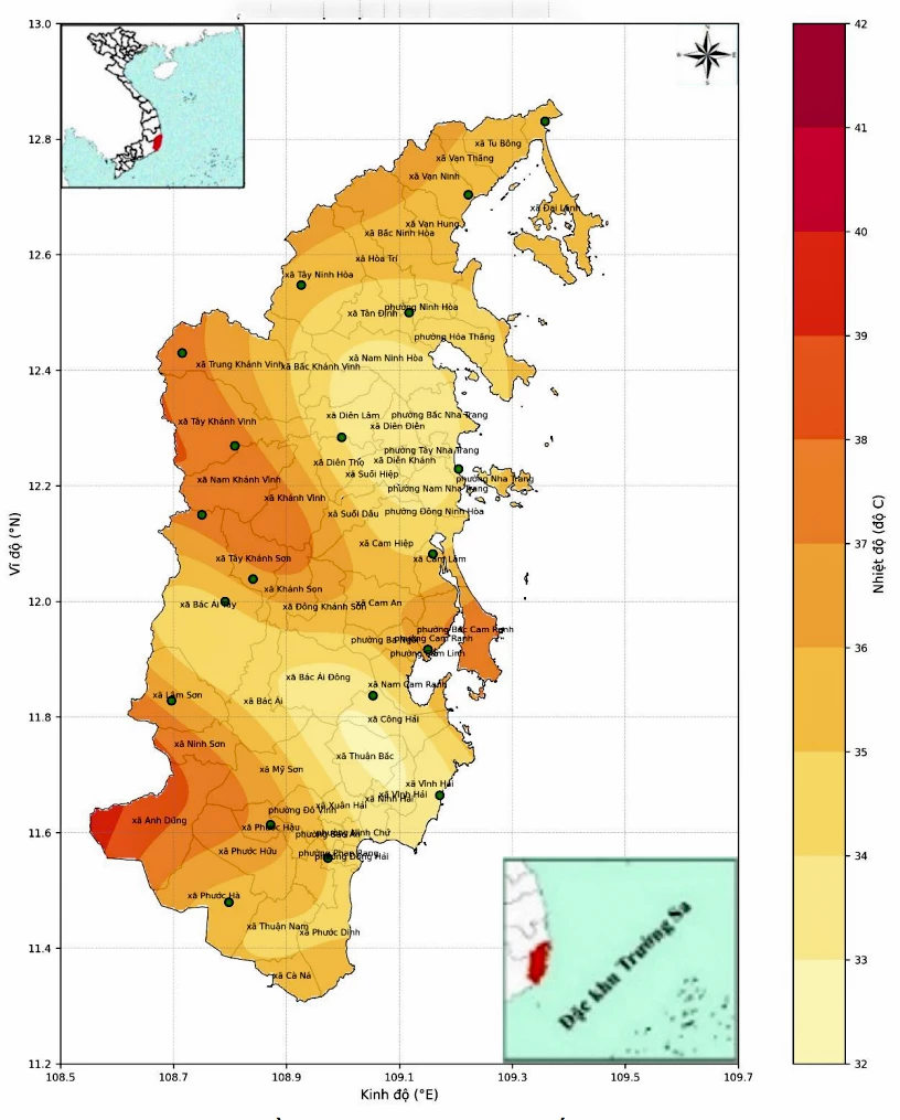 Cụ thể, do ảnh hưởng của rìa xa phía đông nam vùng áp thấp nóng phía tây, ngày 23-4, khu vực tỉnh Khánh Hòa tiếp tục xảy ra nắng nóng cục bộ ở khu vực vùng núi phía tây và tây nam. Nhiệt độ cao nhất trong ngày ở vùng núi phổ biến 35 - 37°C. Độ ẩm tương đối thấp nhất trong khoảng 35 - 40%. Thời gian có nhiệt độ trên 35°C từ 11 đến 15 giờ. Nắng nóng cục bộ trên khu vực sẽ suy giảm từ ngày 25 và xuất hiện trở lại từ ngày 29-4.