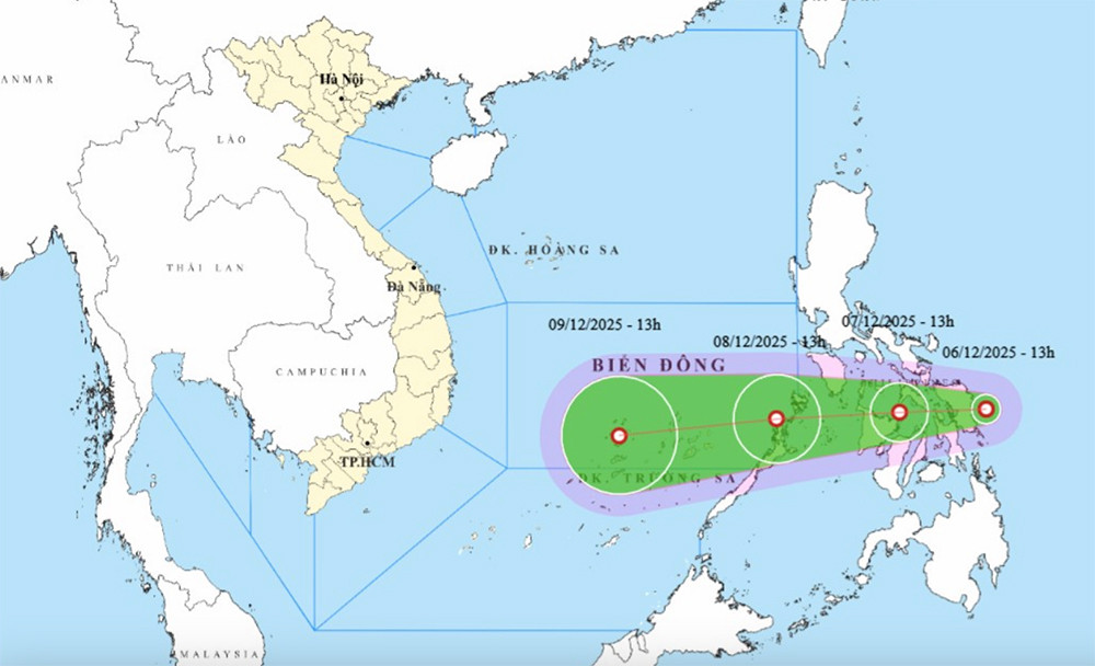 Theo Trung tâm Dự báo khí tượng thủy văn quốc gia, chiều nay 6/12, vị trí tâm áp thấp nhiệt đới hoạt động trên vùng ven biển phía Đông của khu vực miền Trung Philippines. Sức gió mạnh nhất vùng gần tâm áp thấp nhiệt đới mạnh cấp 6 (39- 49km/h), giật cấp 8, di chuyển theo hướng Tây, tốc độ 5-10km/h.