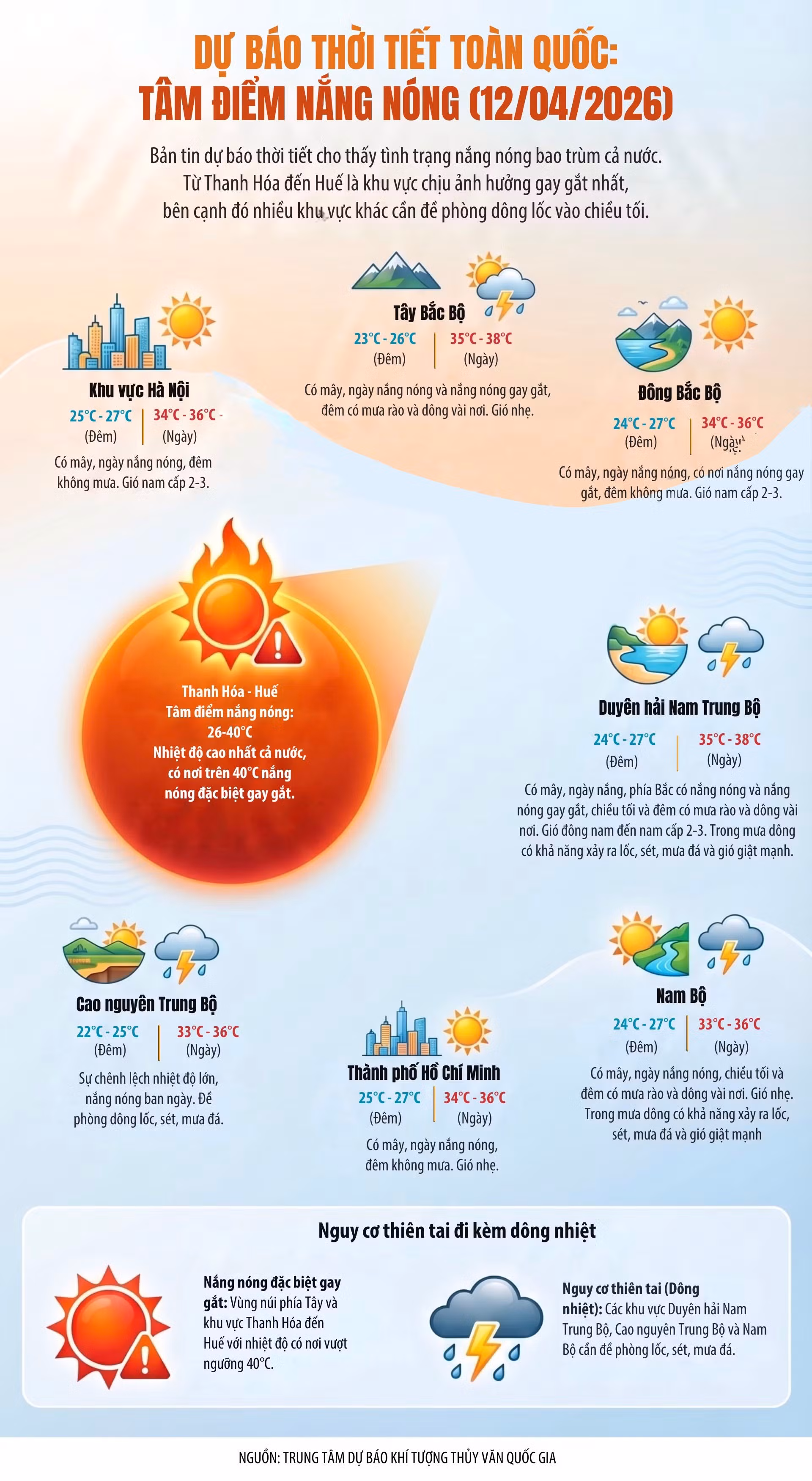 Dự báo thời tiết ngày và đêm 12/4/2026