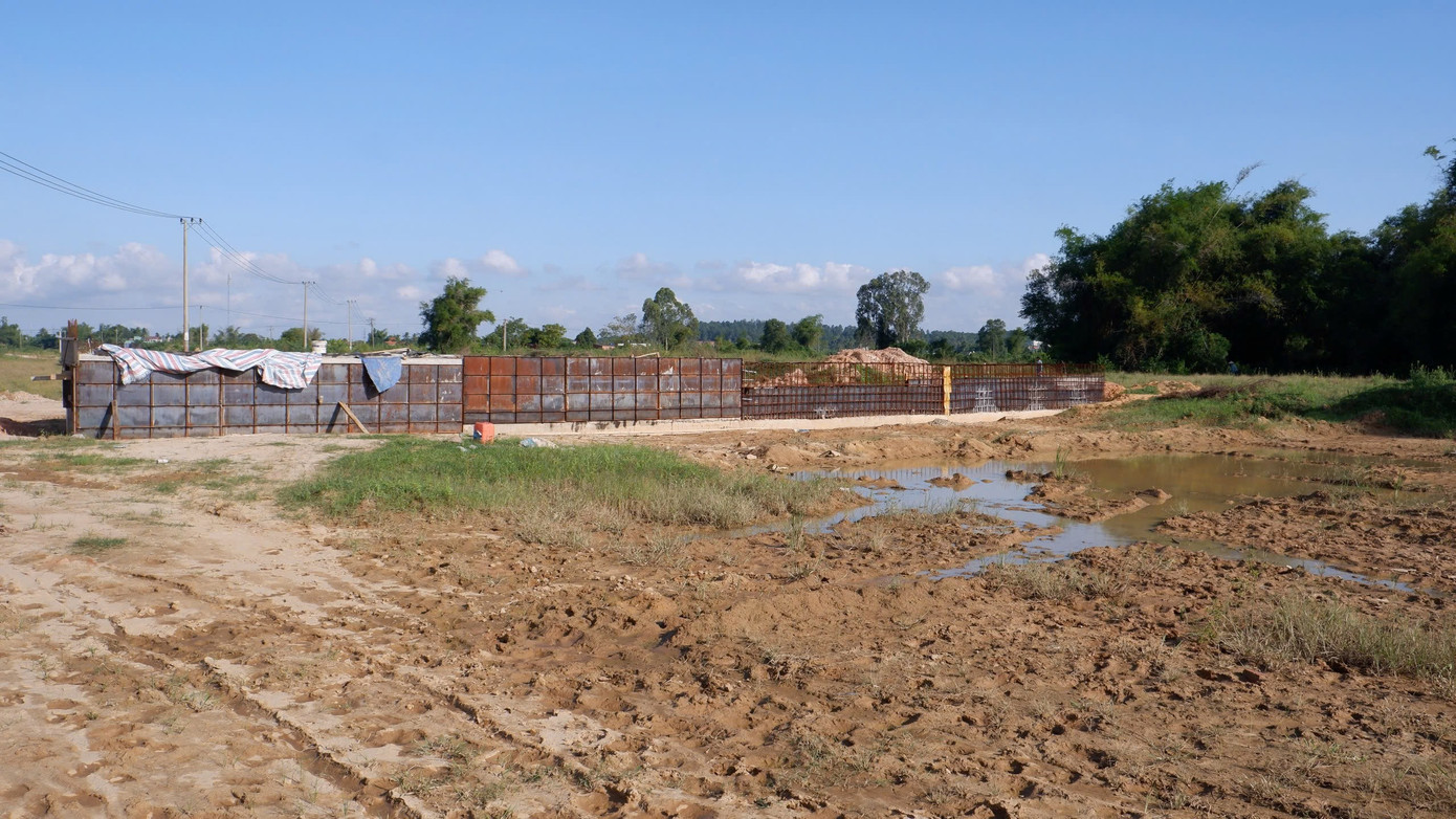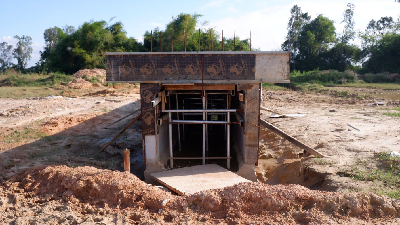 Một hộp cống thi công dang dở rồi dừng giữa chừng trên công trường đường dẫn lên cầu Quảng Đà.