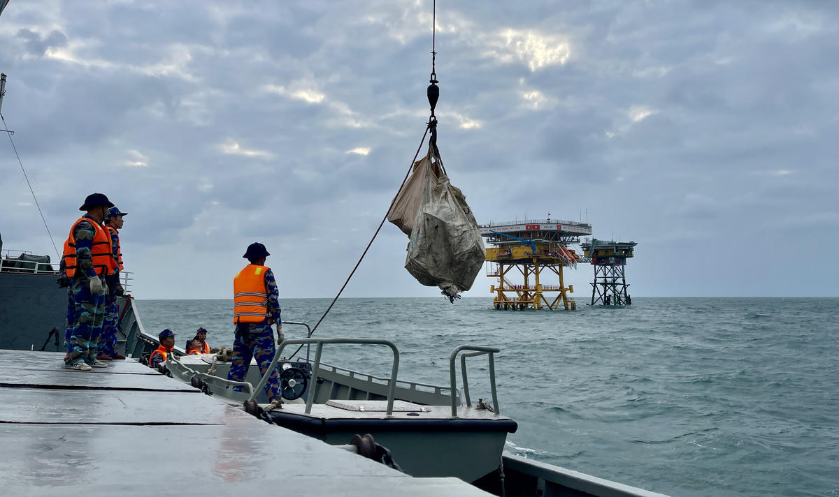 Đặc biệt, tại một số nhà giàn DK1, do thời tiết khu vực phức tạp, sóng to gió lớn nên đoàn công tác đã phải sử dụng dây để đưa người lẫn quà tết lên nhà giàn DK1. Đây cũng là cách duy nhất để tiếp cận nhà giàn khi thời tiết trên biển diễn biến phức tạp. Mặc dù vậy, niềm vui như vỡ òa khi đoàn công tác lên nhà giàn an toàn.